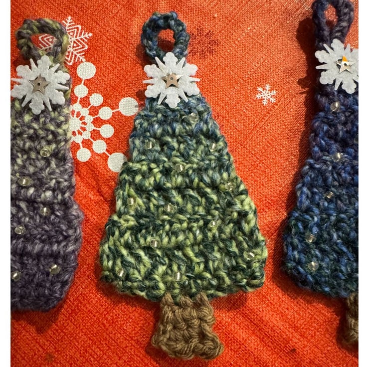 This item is handmade using acrylic yarn and is not fire resistant. Please keep away from open flames and direct heat sources. Small beaded and sequin parts - keep away from babies and young children.