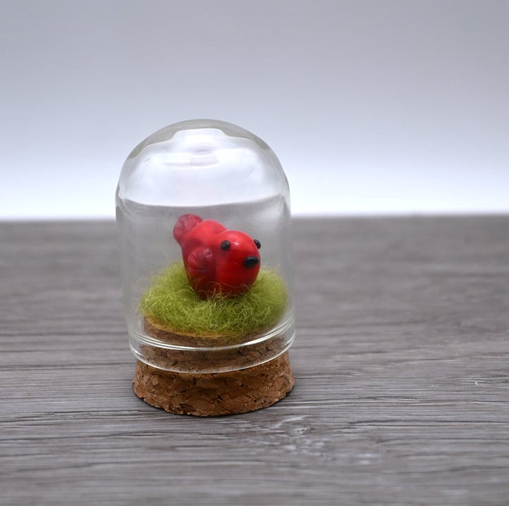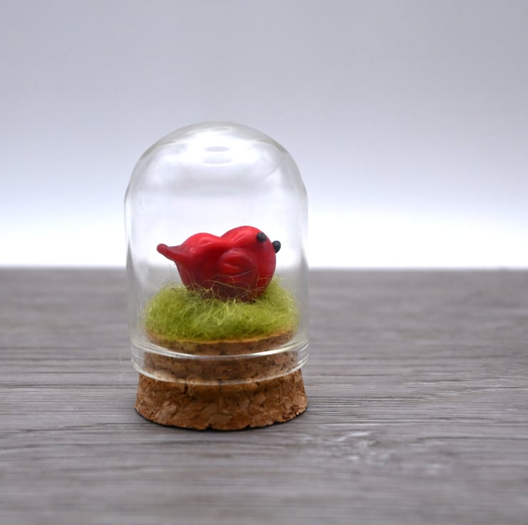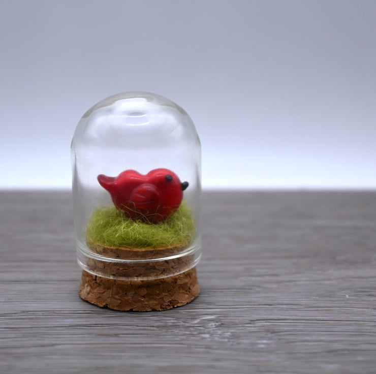 It features green fibre and a handmade lampwork glass red bird.