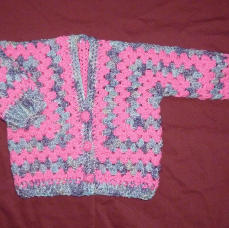 this lovely crochet cardigan has been made in quality acrylic yarn.