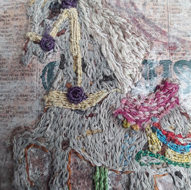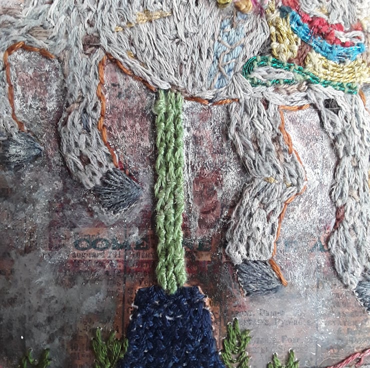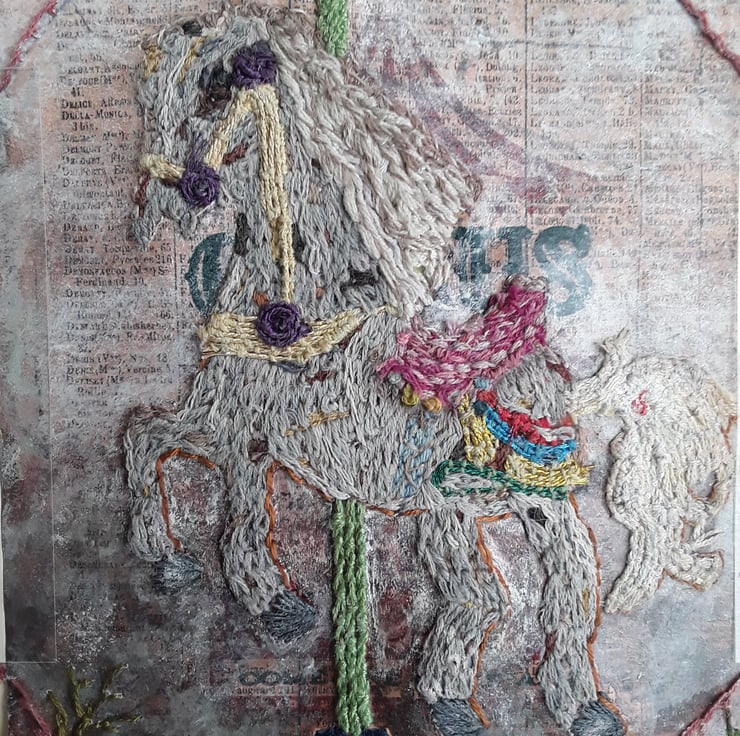 Echo - The Comparable is an original hand stitched and mixed media artwork from my ongoing Ghosts Of The Big Top series.