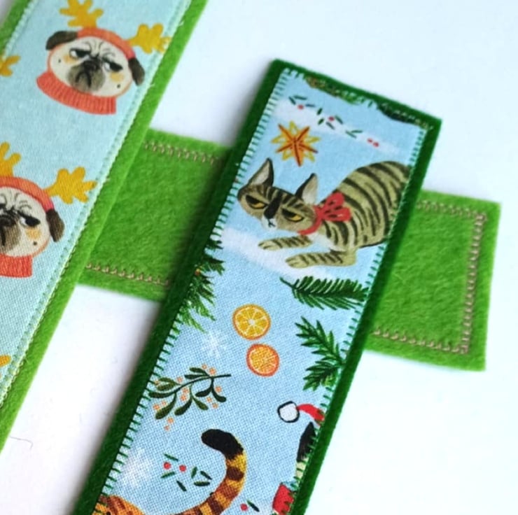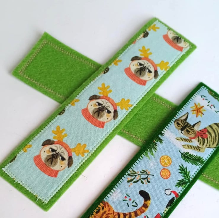 PLEASE NOTE: Bookmarks may differ from the photograph, depending on what part of the fabric they are cut from, and the colour felt used.