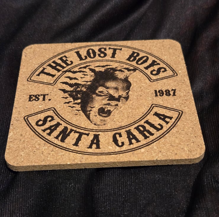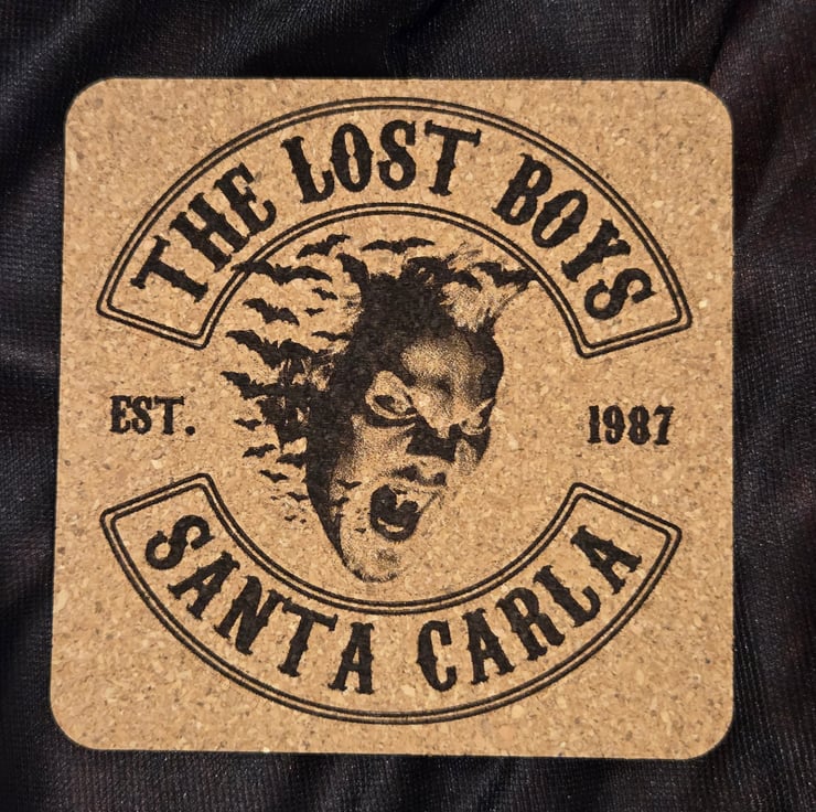 Bring a piece of Santa Carla to your coffee table with this high-quality, laser-engraved cork coaster. Inspired by the 1987 cult classic The Lost Boys, this design features the iconic vampire imagery and the infamous "Santa Carla" boardwalk location.