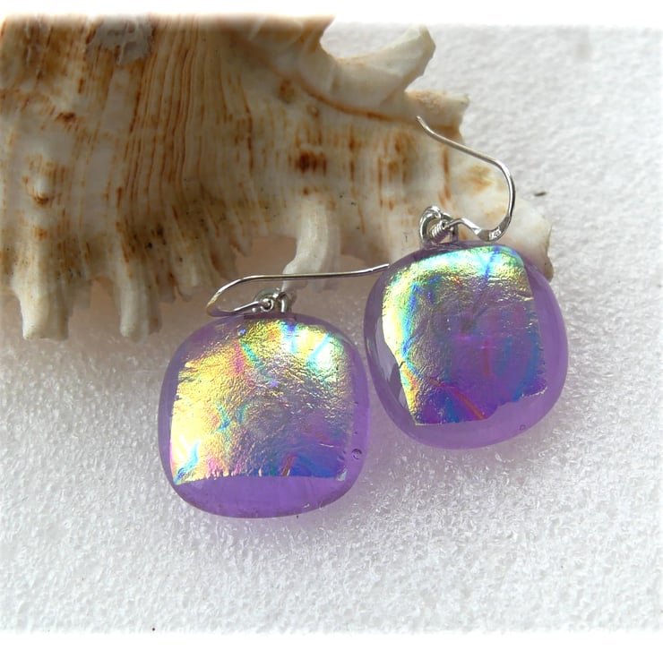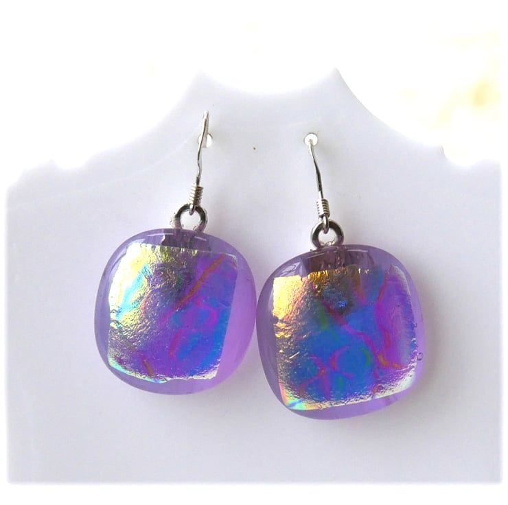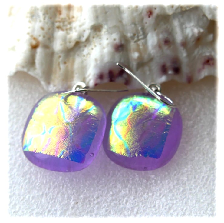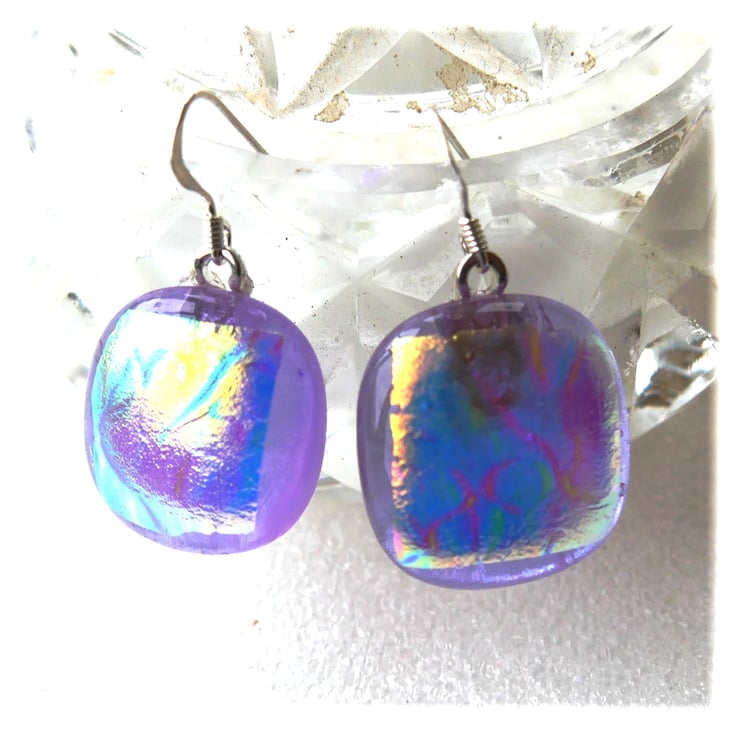 Luxury Dichroic Earrings Fused Glass L012 Sterling Silver hooks