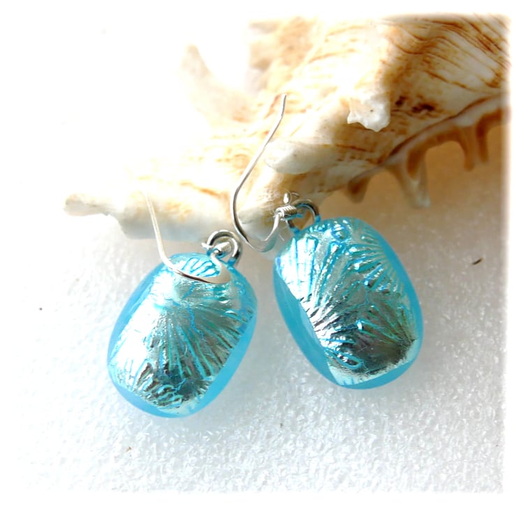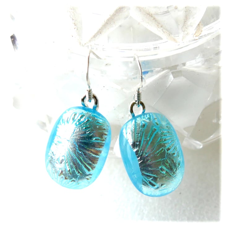 Luxury Dichroic Earrings Fused Glass L013 Sterling Silver hooks