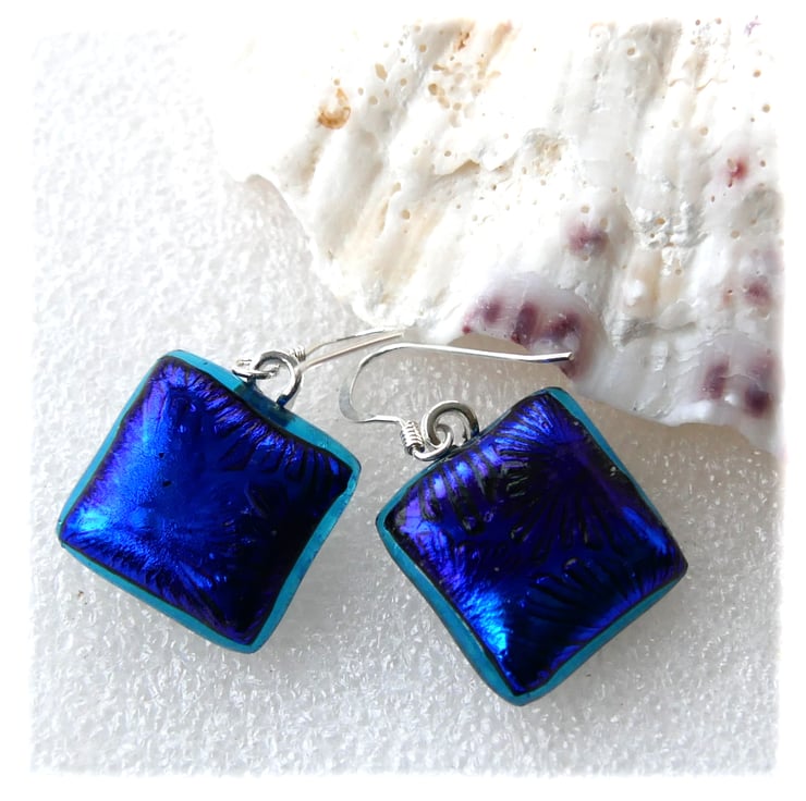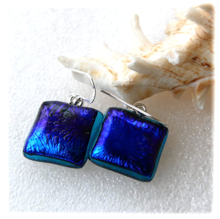 Luxury Dichroic Earrings Fused Glass L014 Sterling Silver hooks