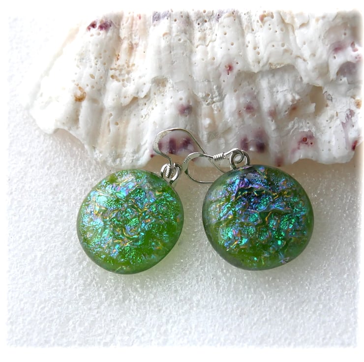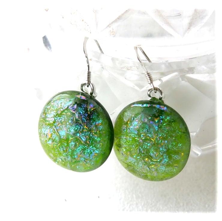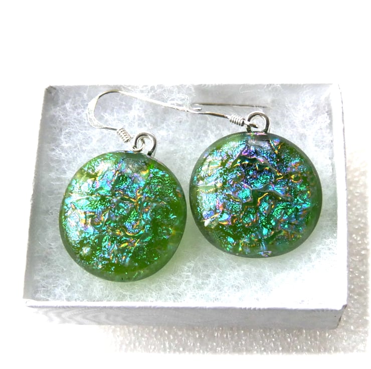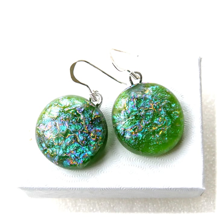 Luxury Dichroic Earrings Fused Glass L017 Sterling Silver hooks