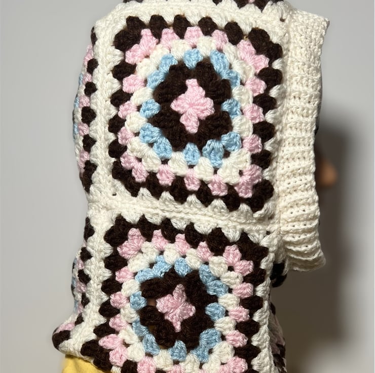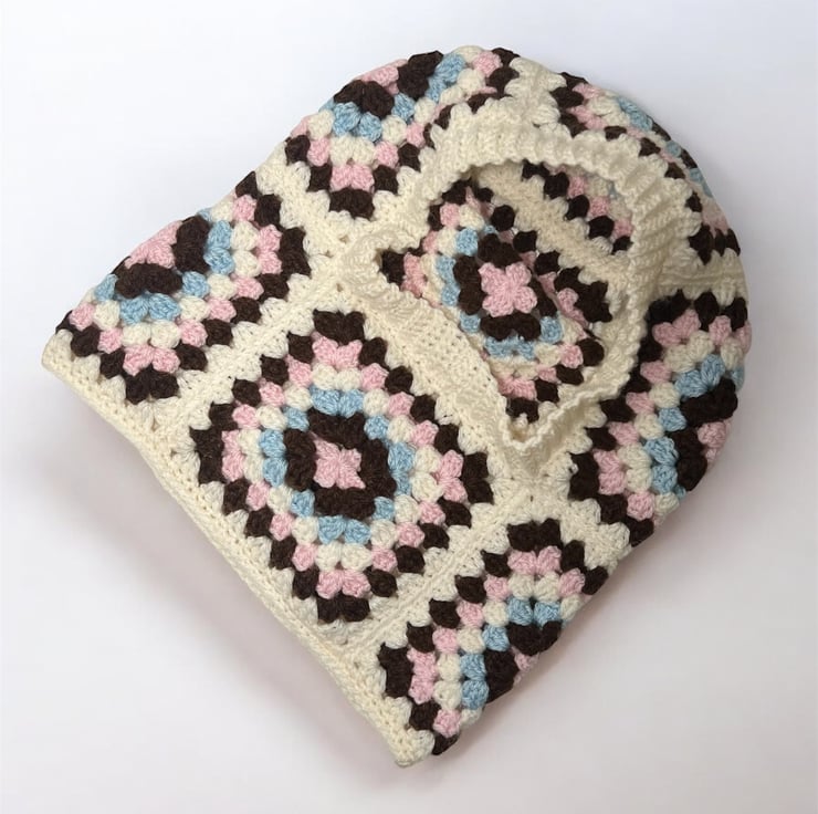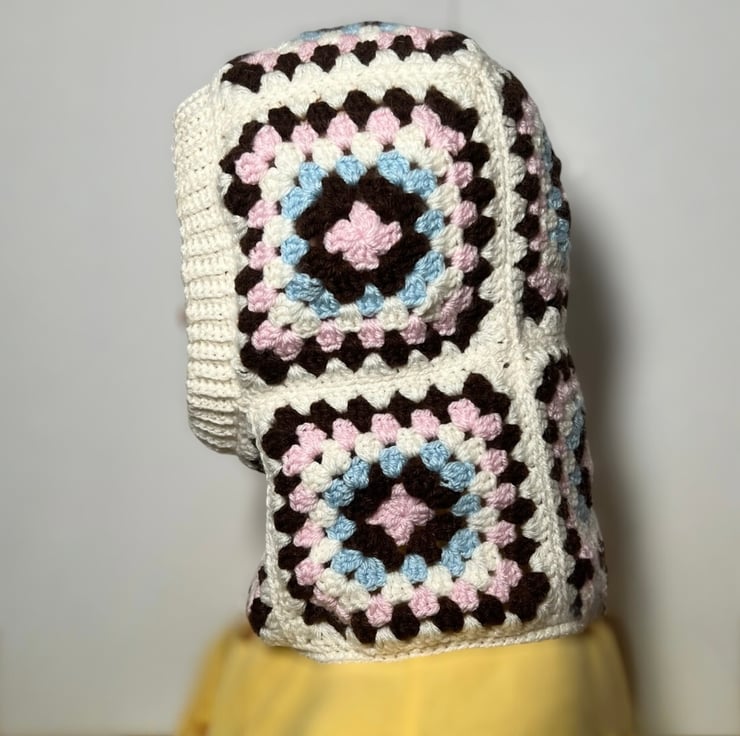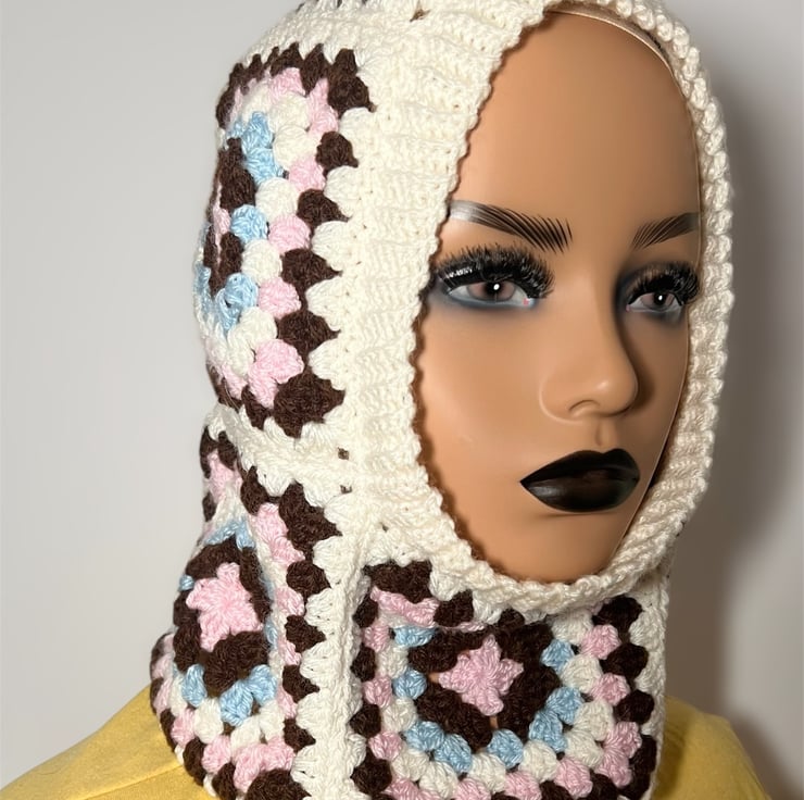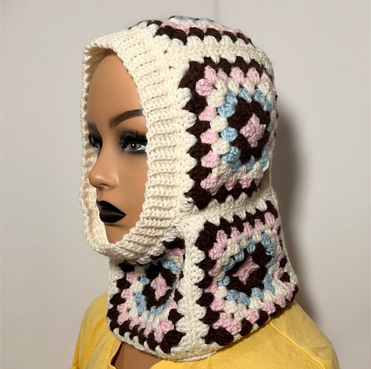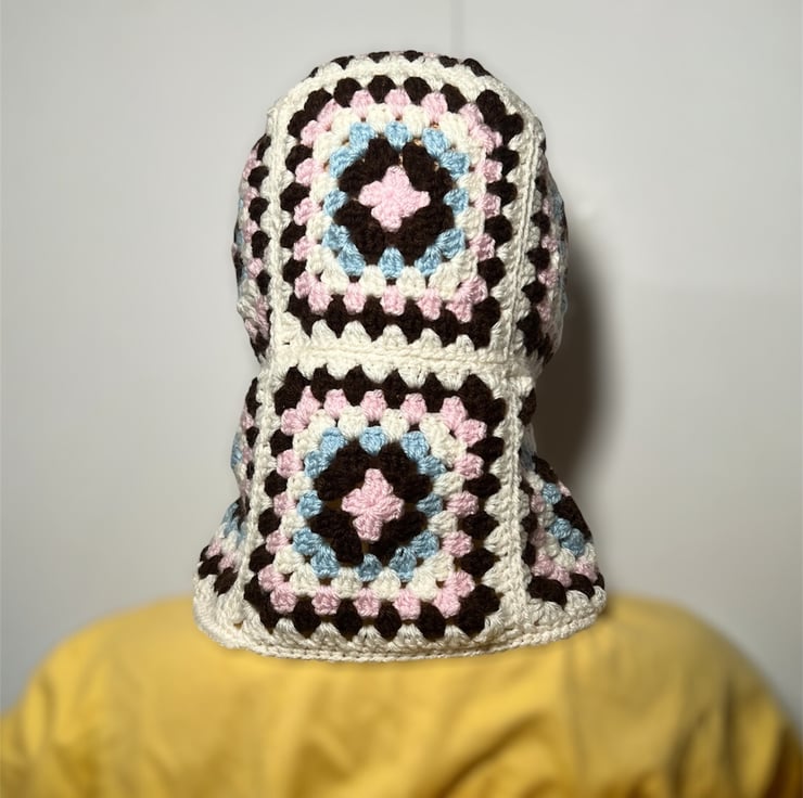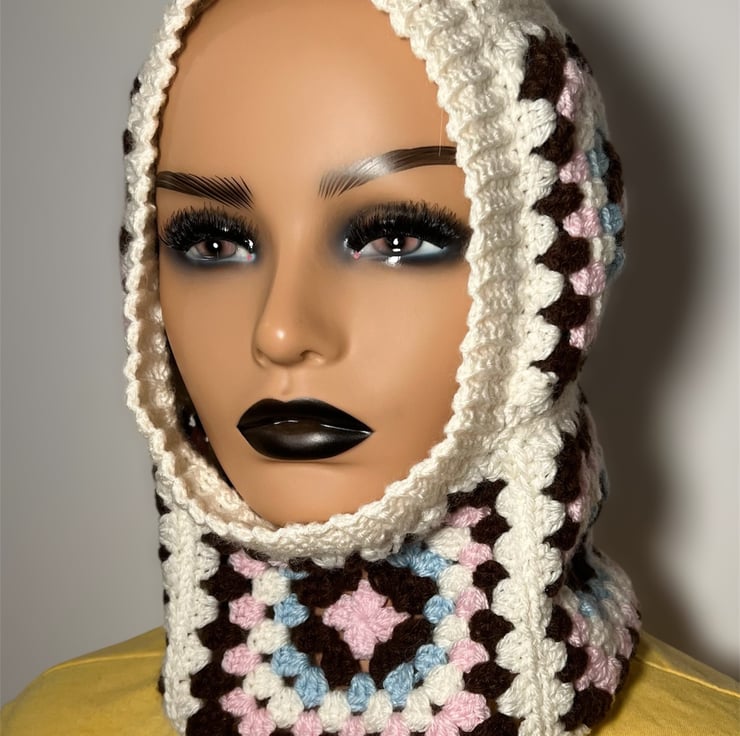 Handmade crochet balaclavas made with granny squares put together warm and cosy keeping head and neck warm in cold chilly days in winter