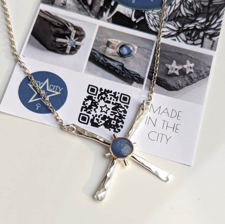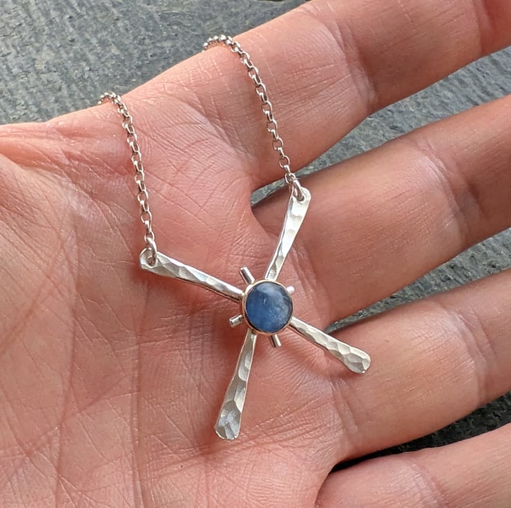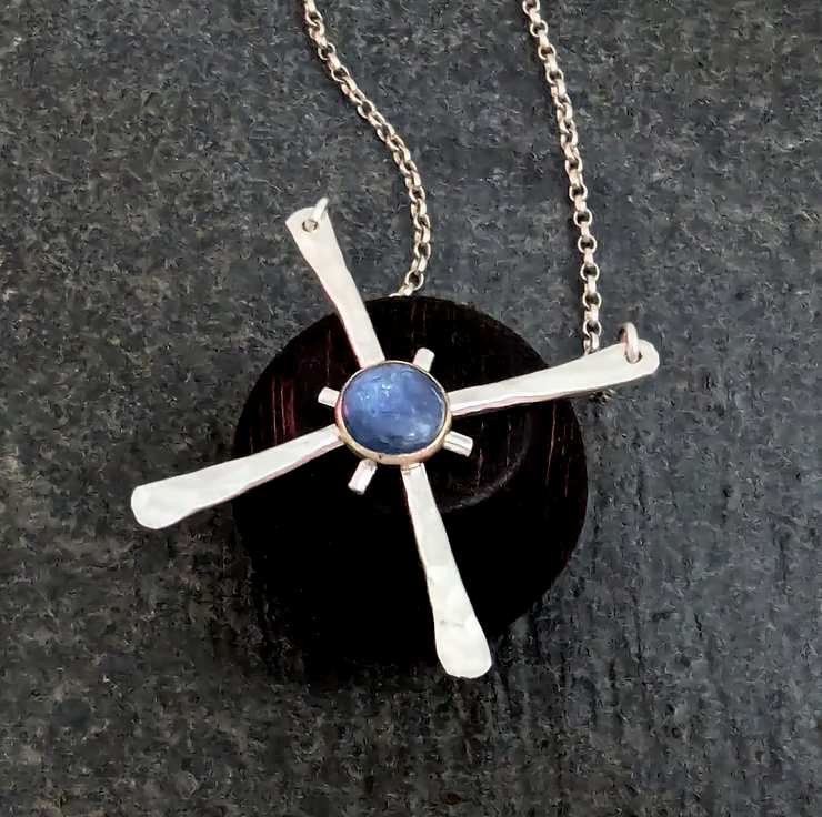 Handmade Starburst designed pendant set with a beautiful blue Kyanite gemstone
