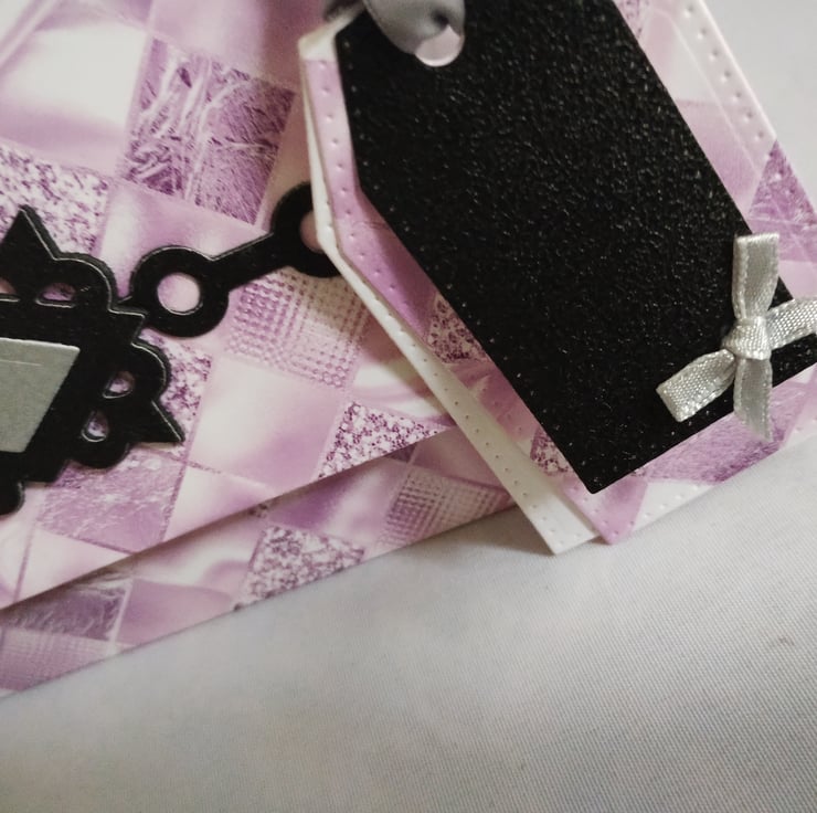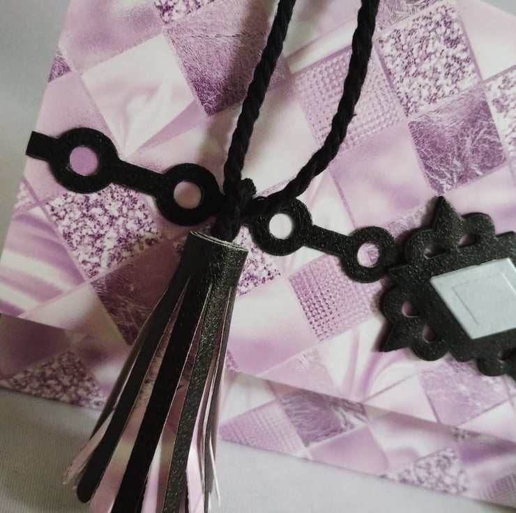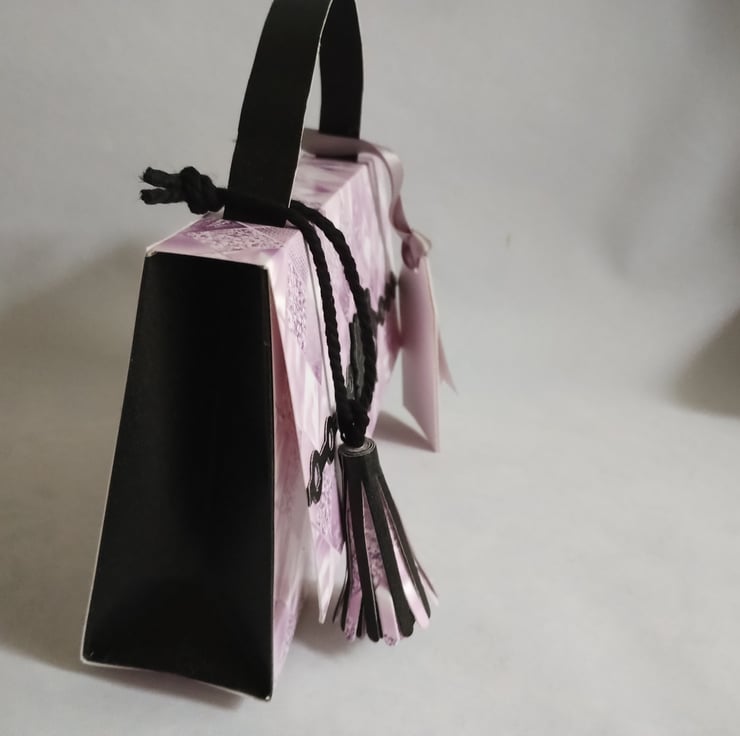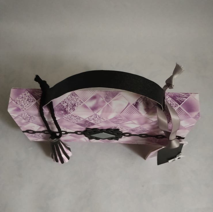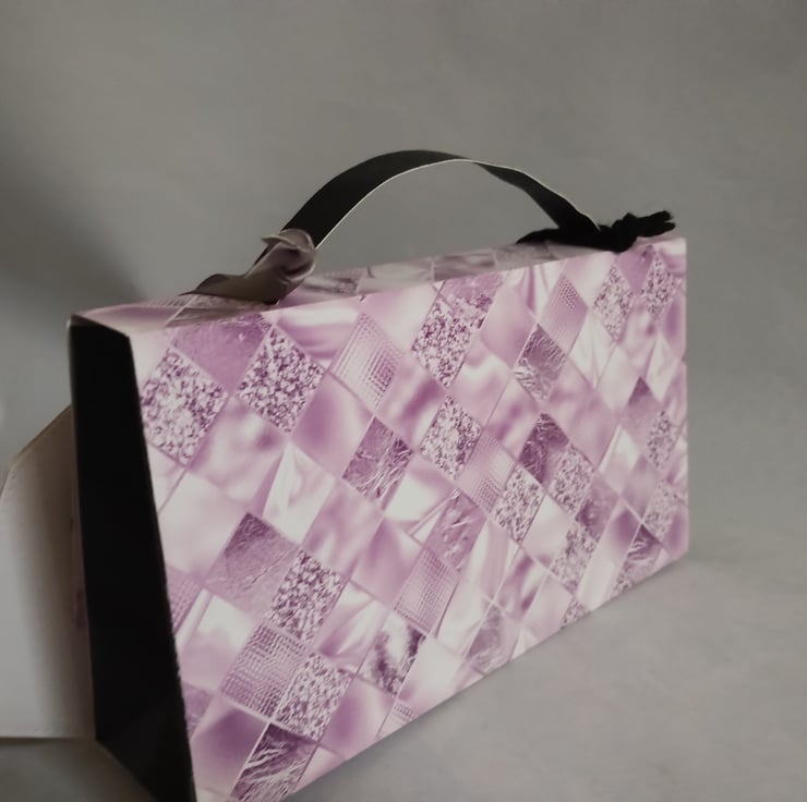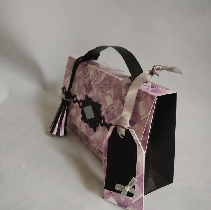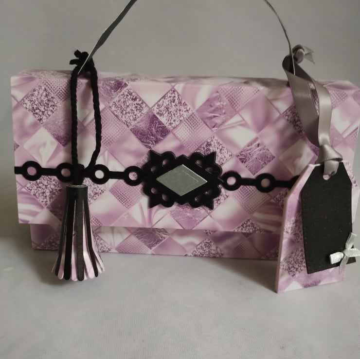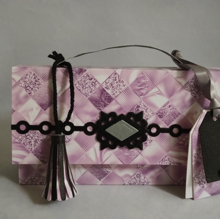 Beautiful Lilac-Purple diamond pattern handbag style gift box with black and silver grey elements