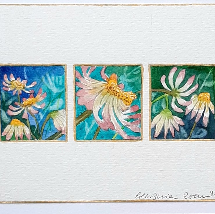 Inspired by my surroundings, a triptych of daisies.
