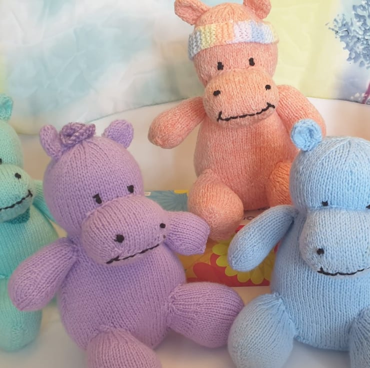 Lovely knitted Hippo toy, around 8" tall.