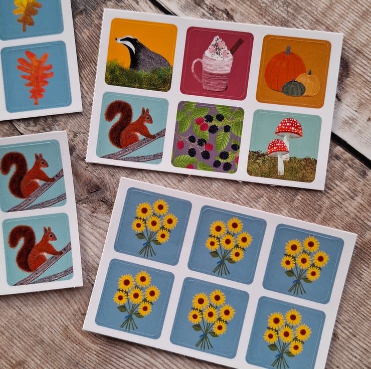 Each set contains 4 Autumn themed envelope sticker sheets, each sheet with six square mini stickers making 24 mini stickers in total. They are the perfect size to stick on greeting card envelopes, letters or journals and make them extra special.