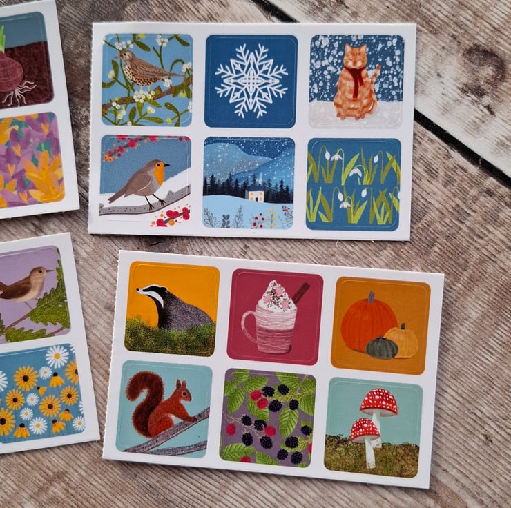 Each set contains 4 envelope sticker sheets, each of a different seasonal theme. Each sheet has six square mini stickers making 24 mini stickers in total. They are the perfect size to stick on greeting card envelopes, letters or journals and make them extra special.