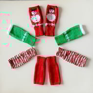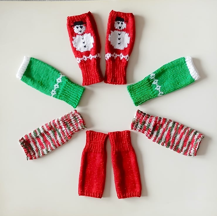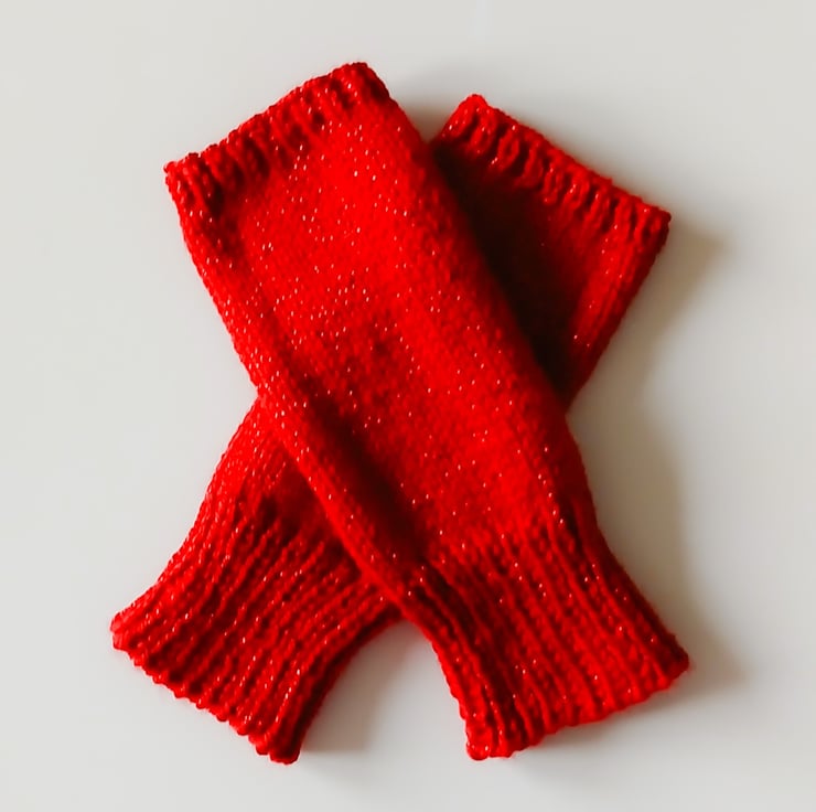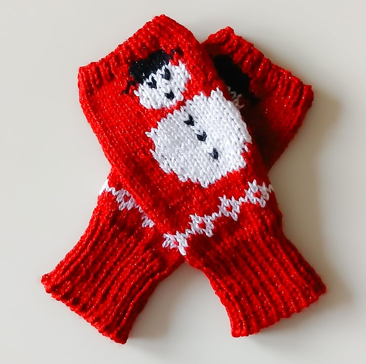 To fit adult. Width across palm: 18 cm or 7.25 inches. Length: 20 cm or 8 inches. The wrist warmers are knitted in double knitting yarn using 3.25 mm and 4 mm knitting needles. They are knit flat on a pair of single pointed needles. There are Fair Isle charts included.