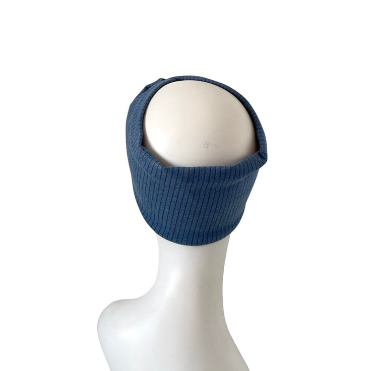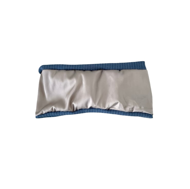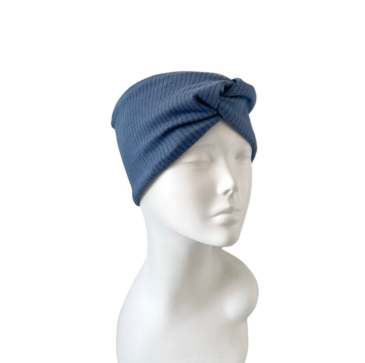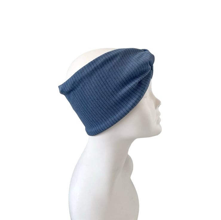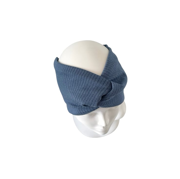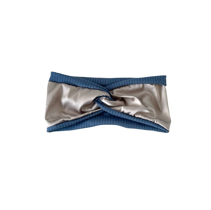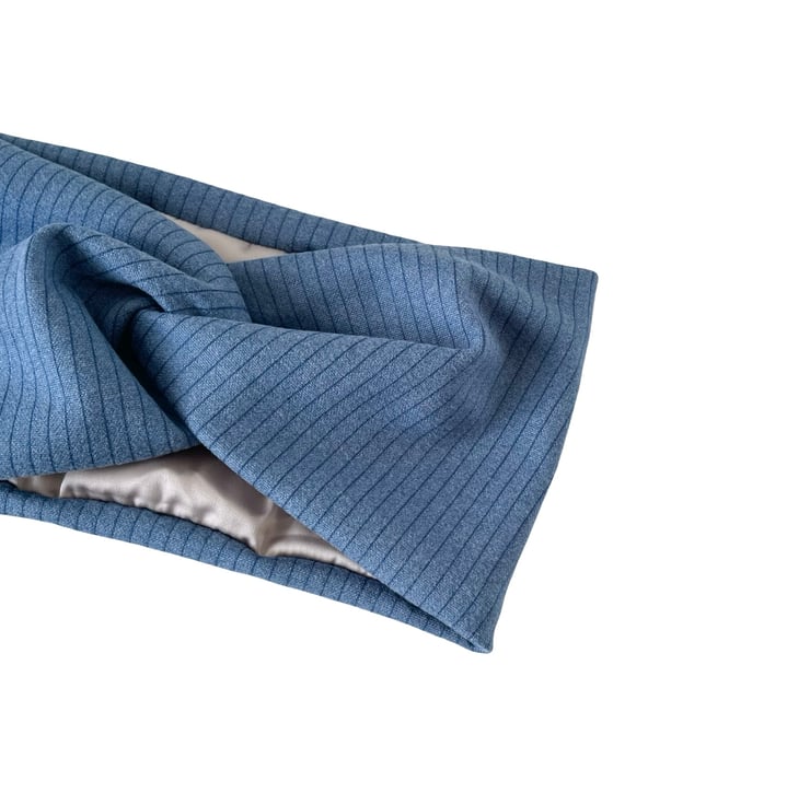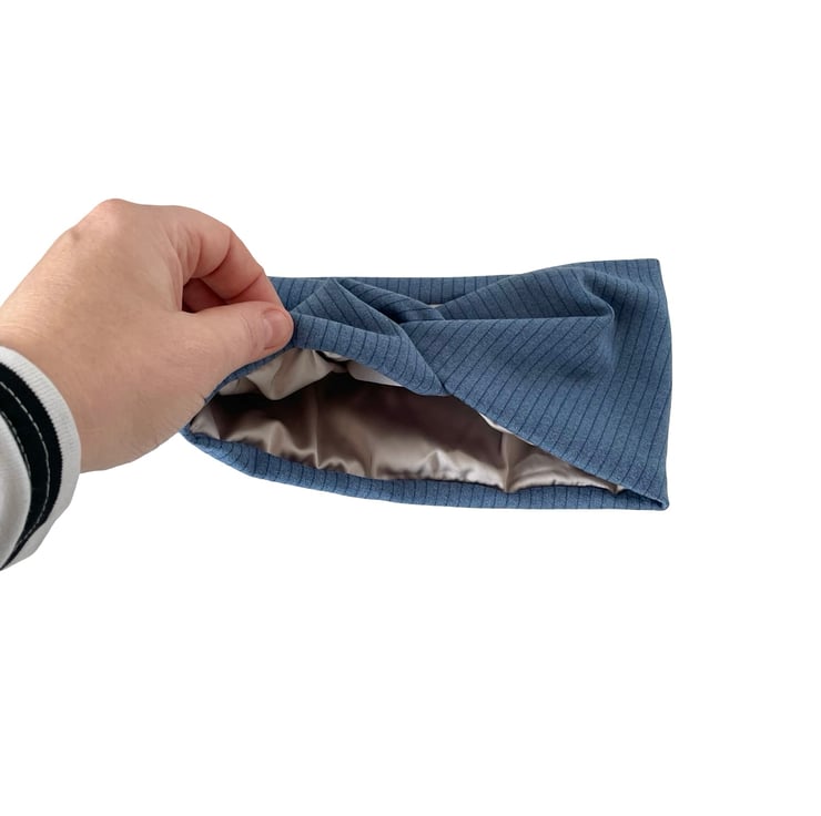 Denim Blue Satin Lined Twisted Headband Wide Brushed Knit Jersey Head Wrap