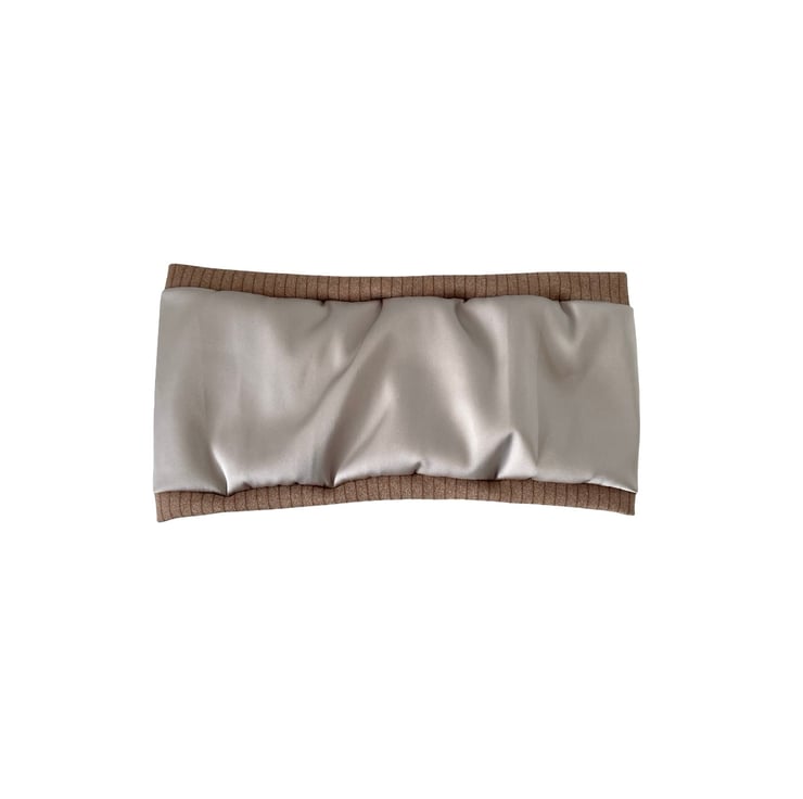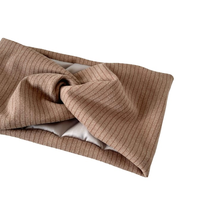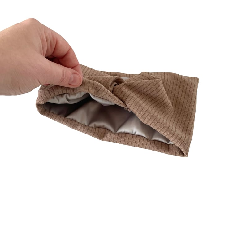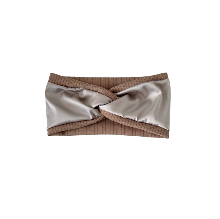 Handmade with love, these satin lined twisted headbands are designed to be as beautiful as they are practical. The outer layer is made from ultra-soft, stretchy brushed ribbed jersey for a cosy and stylish look, while the inside is lined with smooth light taupe satin to help protect your hair from breakage and frizz.