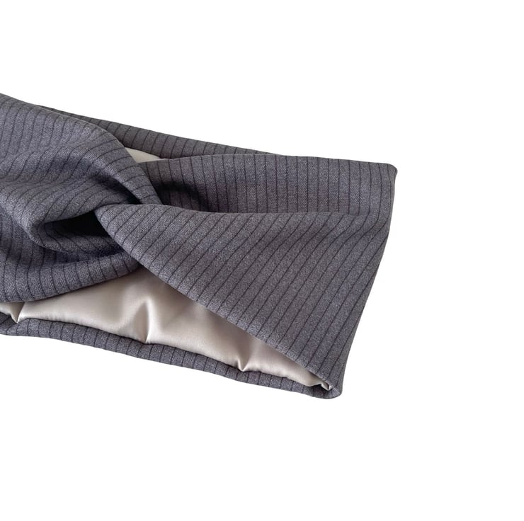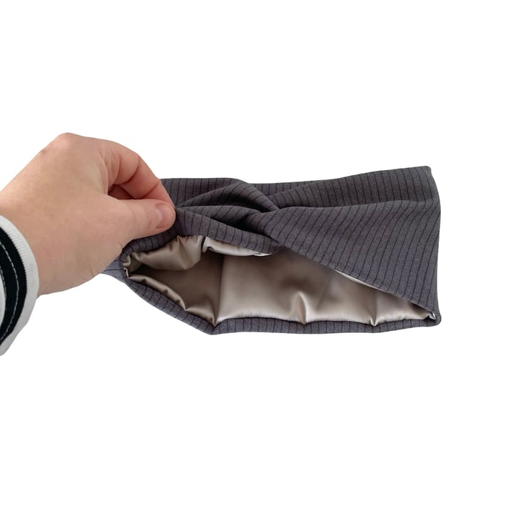 Handmade with love, these satin lined twisted headbands are designed to be as beautiful as they are practical. The outer layer is made from ultra-soft, stretchy brushed ribbed jersey for a cosy and stylish look, while the inside is lined with smooth light taupe satin to help protect your hair from breakage and frizz.
