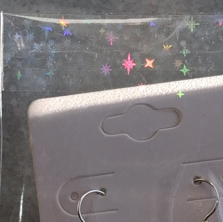 Will be sent as shown on a white earring card, holographic gift bag & tissue paper wrapped