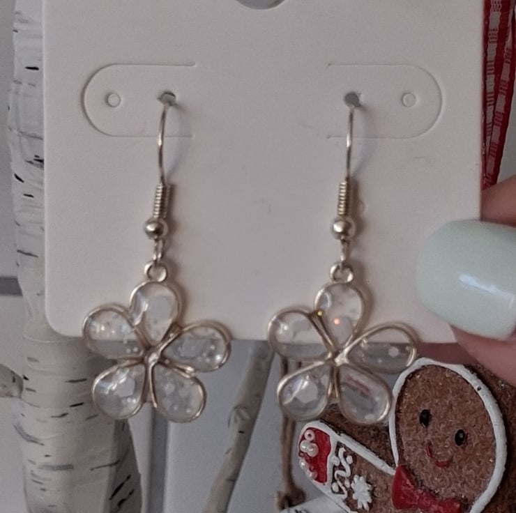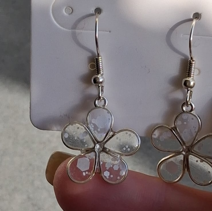 Gorgeous silver flower bezel with clear resin & white glitter that looks just like snoe