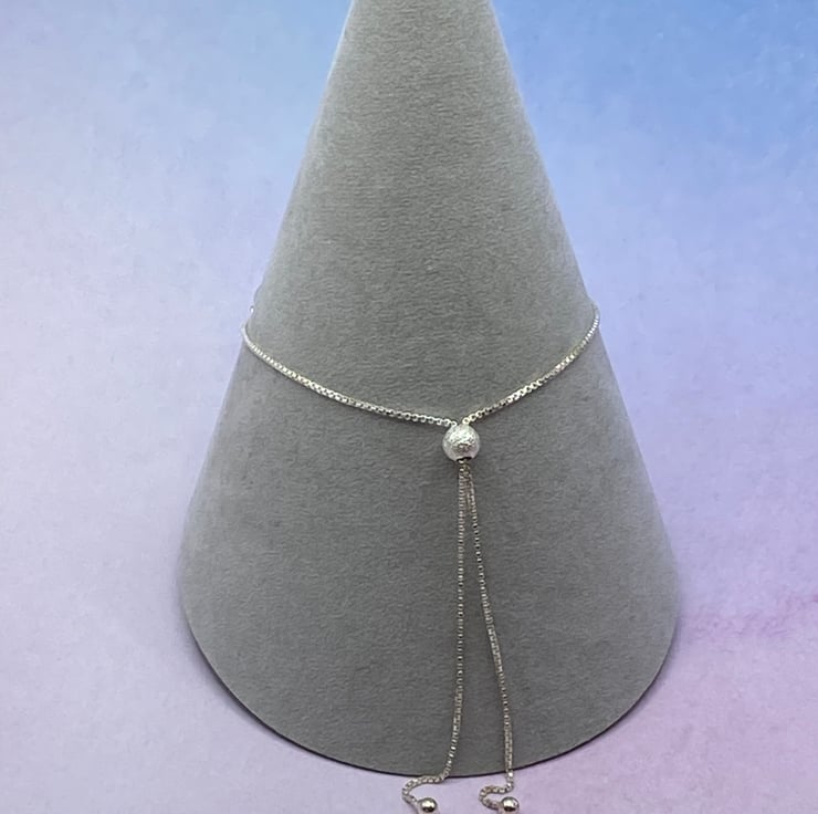 This has a sliding ball fastening so it's suitable for most wrist sizes - as a guide, when worn on a 19cm wrist the 'dangling' strands measure approx 7cm.