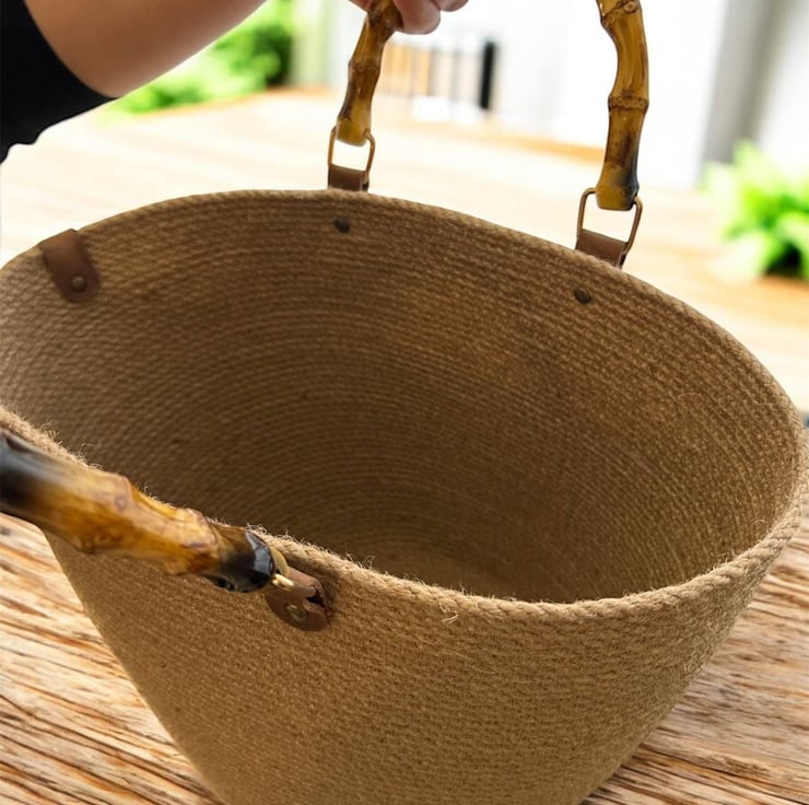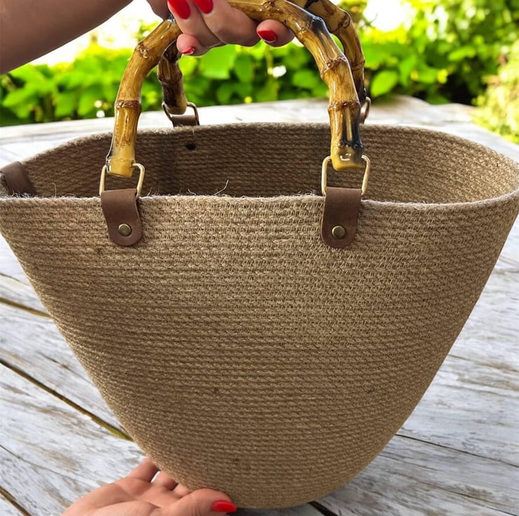 Handmade Jute Tote Bag with Bamboo-Style Handles Natural Summer Beach & Market B