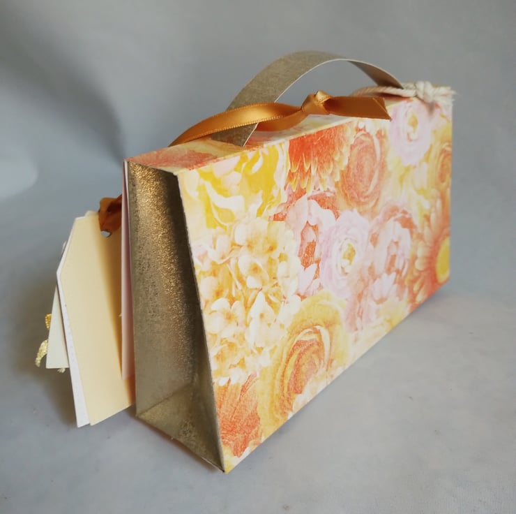 Handbag Style Gift Box - Orange, Yellow and Pink Blooms with Golden Highlights