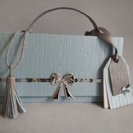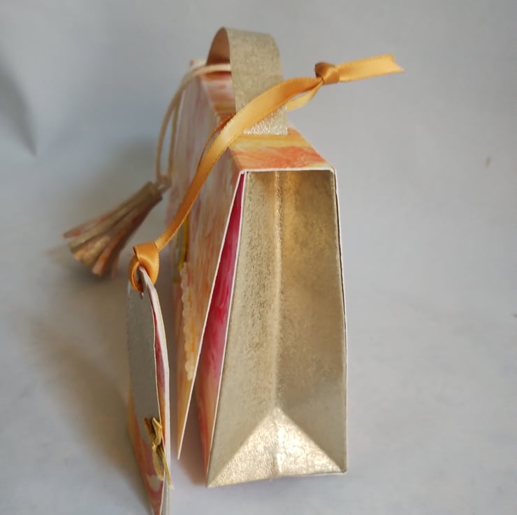 I've made a matching paper tassel and gift tags for your message to the recipient. The tassel is tied with thick silver cream twine and the gift tags are tied with beautiful co-ordinating zesty orange satin ribbon. There is also a tiny satin ribbon bow on the gift tag.