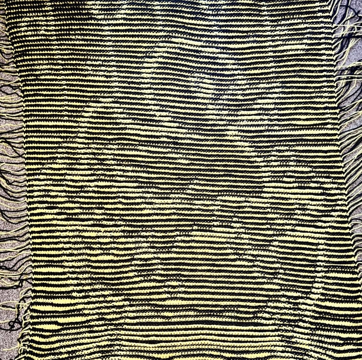 Lovingly handmade by me at Bizzy Lizzy’s Place, this blanket has been crocheted using canary yellow and anthracite grey yarn, with a border to frame the design beautifully.
