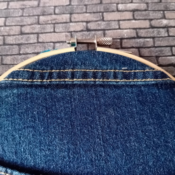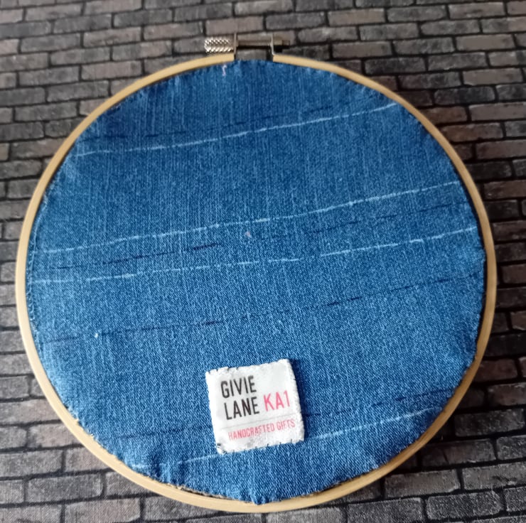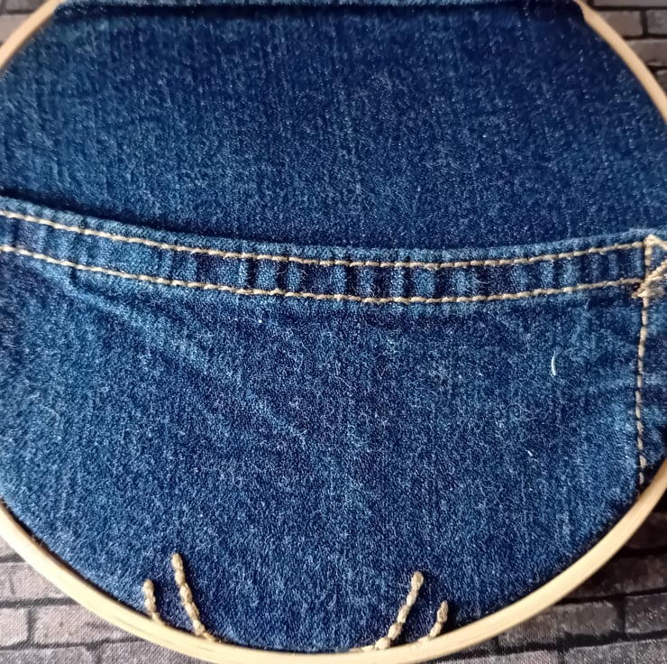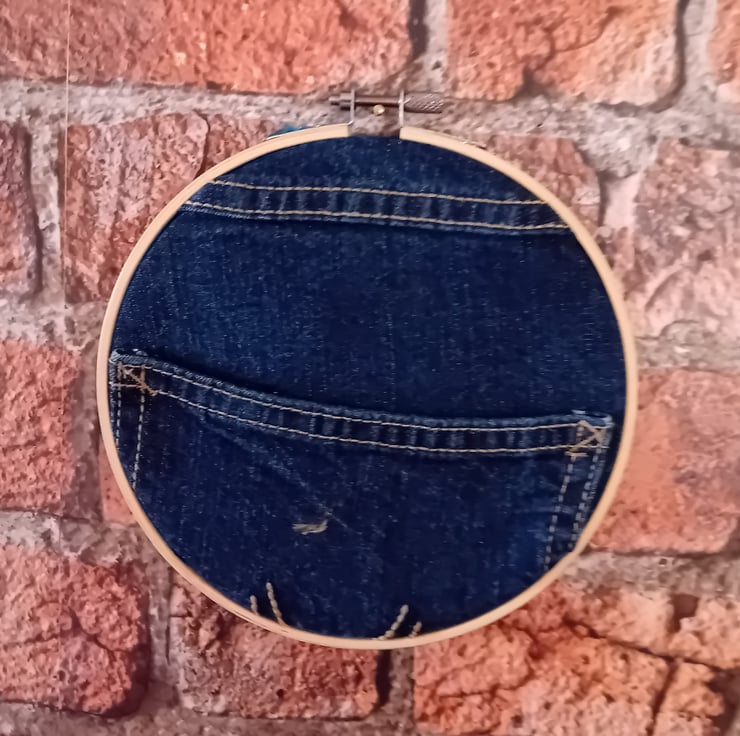 Sustainability for us means: using what we have found. Upcycling, reworking, and re-imagining materials.And using every part of each garment. We often have denim pockets and scraps left over from bigger projects. And when we realised just how many embroidery hoops we had collected from charity shops, we combined the two to produce some quirky storage.