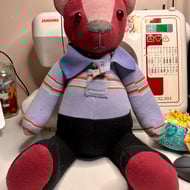 Because of the materials I use and removable clothing he is not suitable as a child’s toy. Please do not give him to children, especially babies and toddlers.
