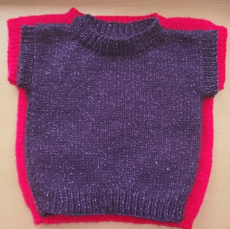 To fit chest size: 56 (60: 65) cm or 22 (24: 26) inches. Actual chest size: 60 (65: 71) cm or 24 (26: 28) inches. Length: 32 (34: 36) cm or 13 (13.5: 14) inches. It is knitted in double knitting yarn using 3.75 mm and 4 mm knitting needles.