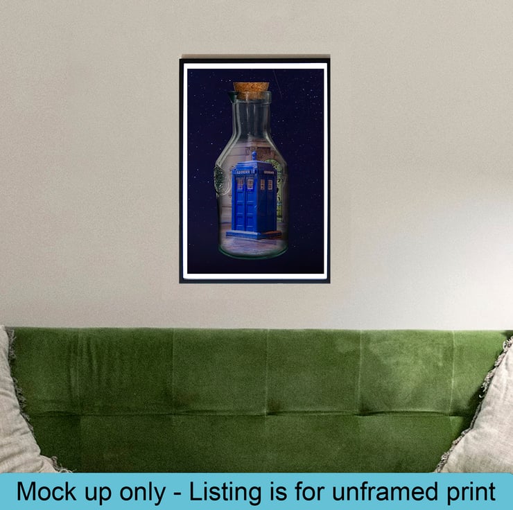 The world famous police call box as seen in the original TV time traveller montaged here into a variation of the ship in a bottle idea.