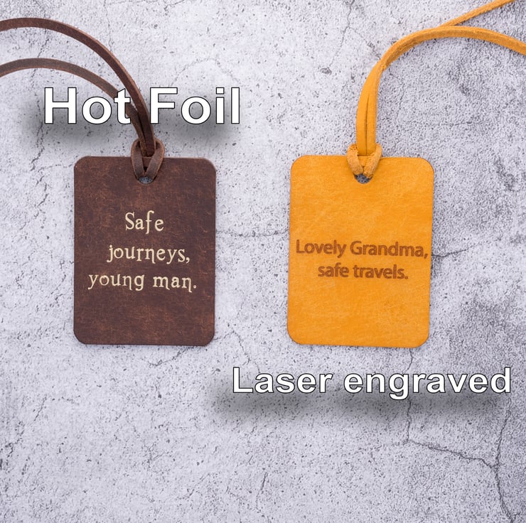 You can choose between two personalisation methods. Engraved default option natural emboss directly into the leather no paint or filling allows for longer texts. On dark leather colours engraved text may be less visible in such cases we recommend choosing hot foil.