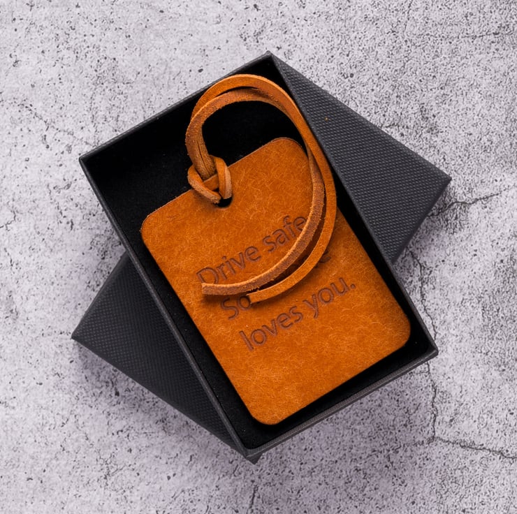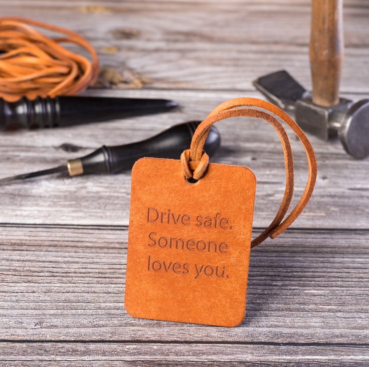 This handmade leather car charm was created for people who care about their own safety and about their family waiting at home. Hanging from the rear view mirror it becomes a quiet reminder to slow down and always come back safely.