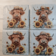 This 4 piece slate coaster set has been hand painted and decoupaged with a beautiful Ginger Cat in various positions.
