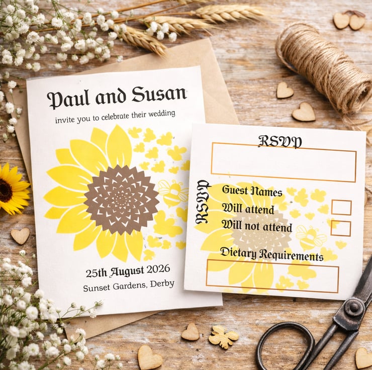 Complete Wedding Stationery Bundle Handmade Envelopes Sunflower Set