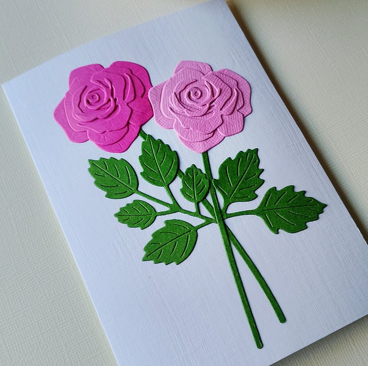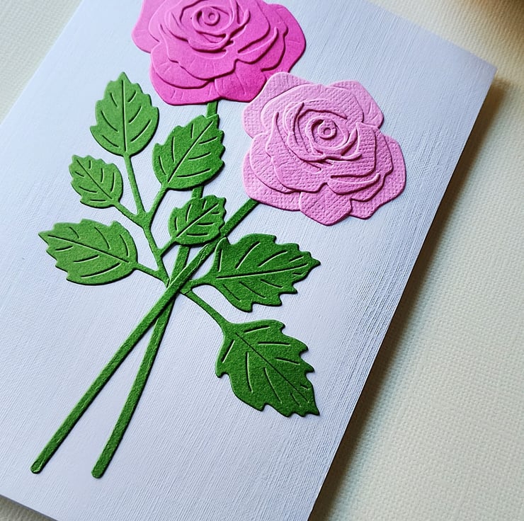 Pink Roses - Flower Shop Moments, Blank Handmade Floral Card