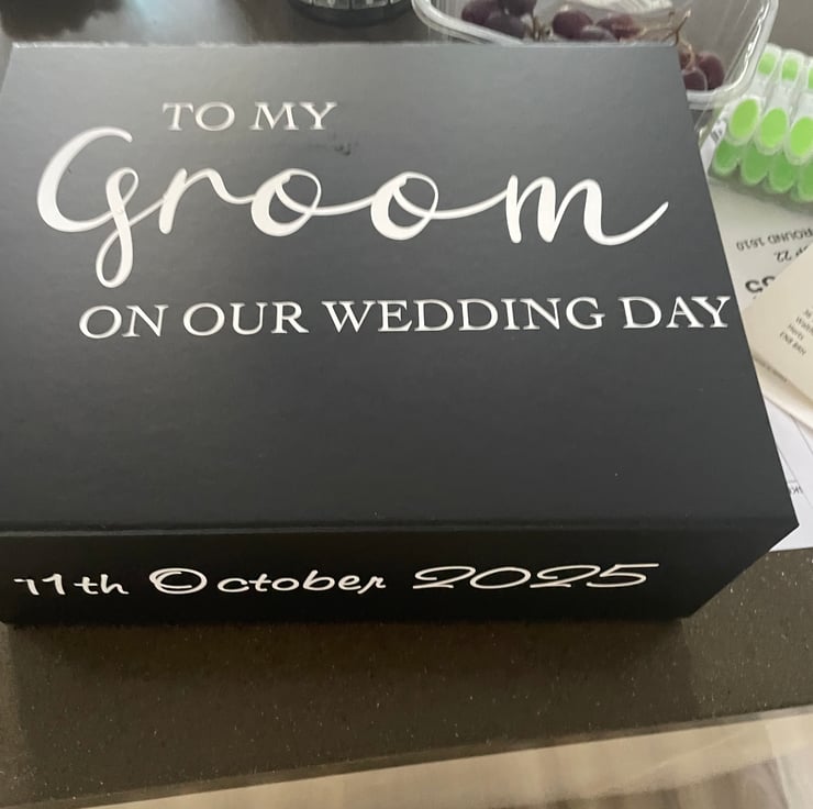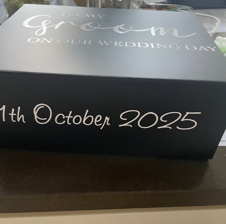 With tissue paper and the wedding date and to my groom along with a personalised message in side