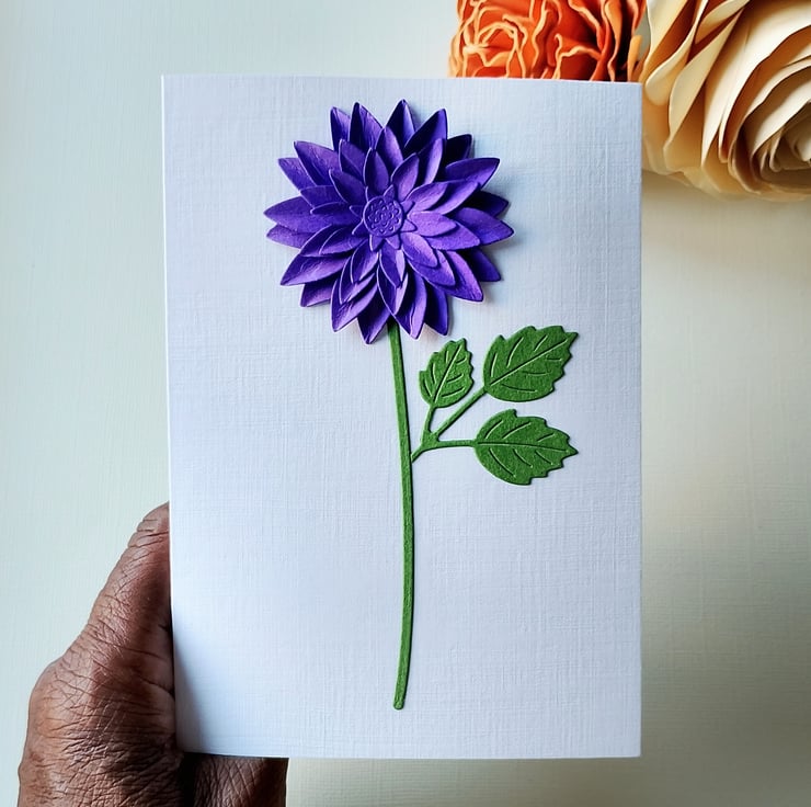 Purple Dahlia - Flower Shop Moments, Blank Handmade Floral Card