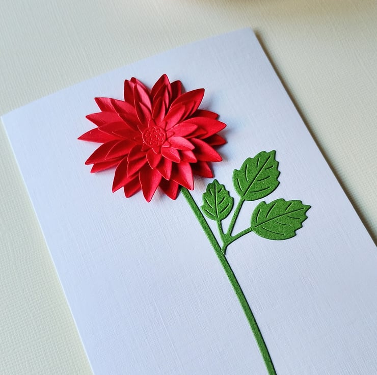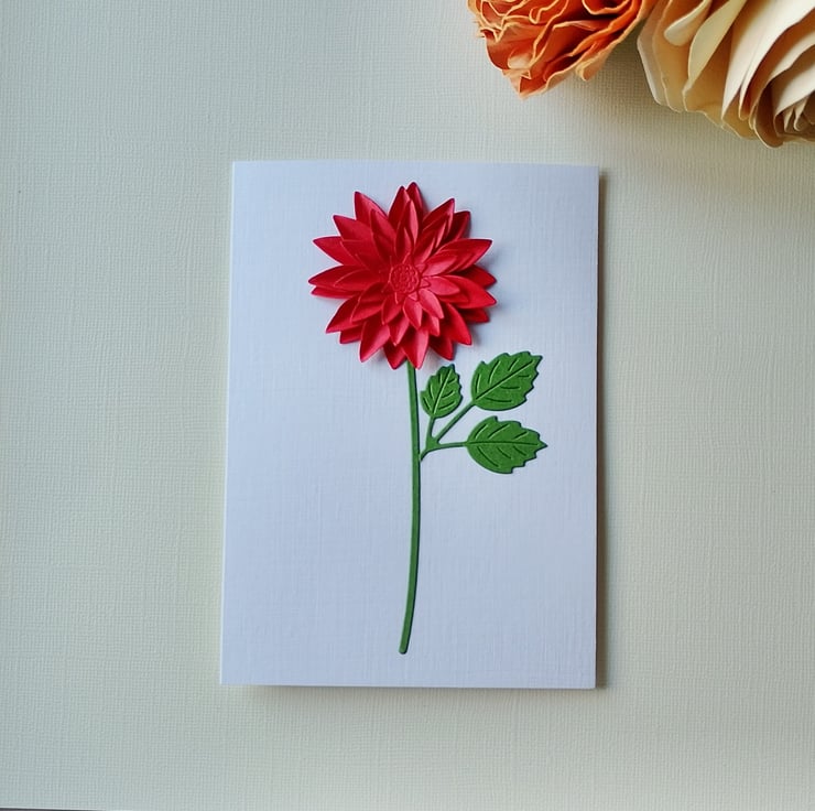 Red Dahlia - Flower Shop Moments, Blank Handmade Floral Card