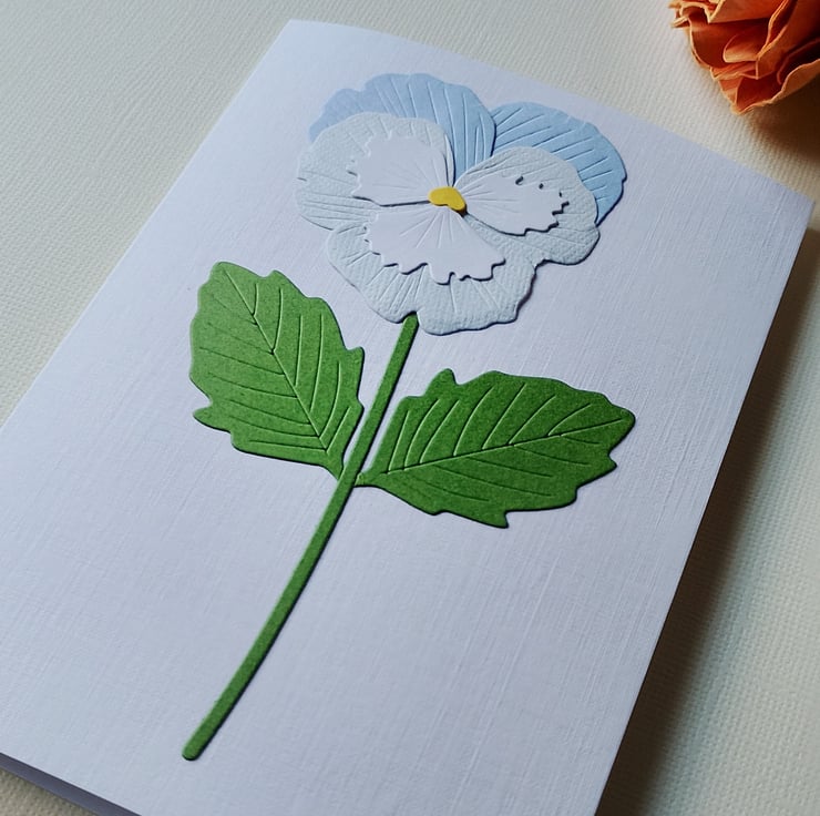 Blue White Pansy - Flower Shop Moments, Blank Handmade Floral Card