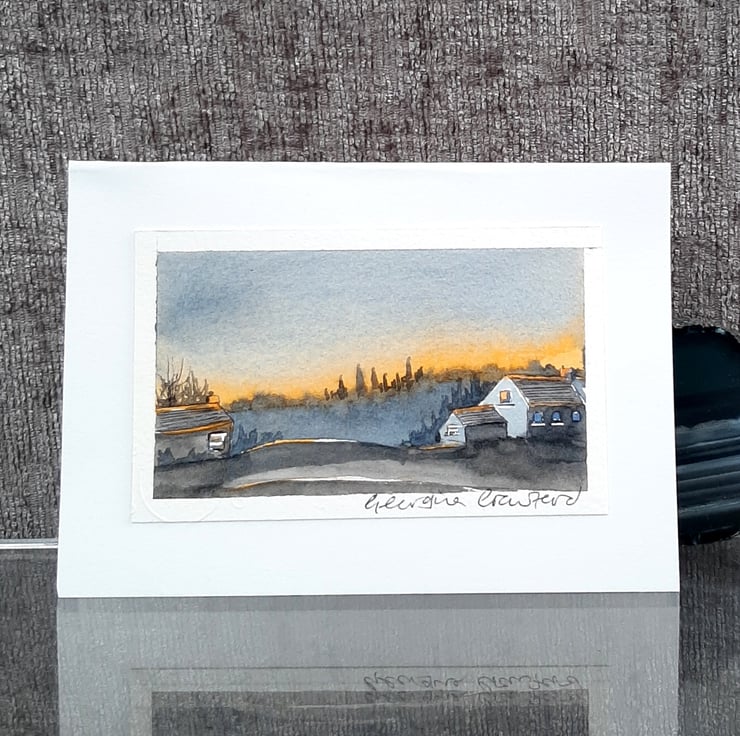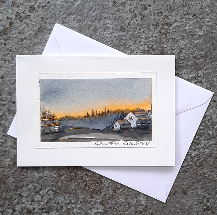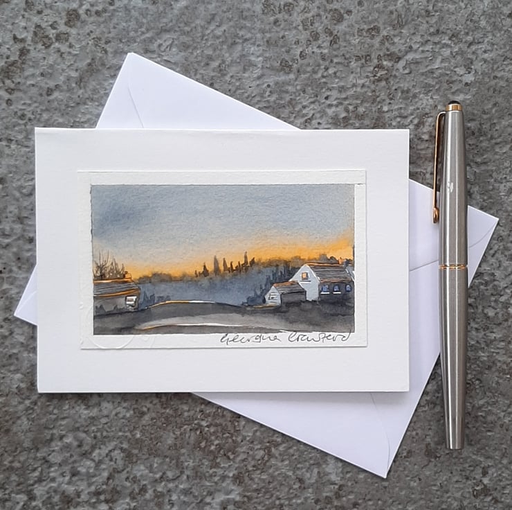 Handpainted Watercolour, mounted onto hand cut, soft-white Card.
