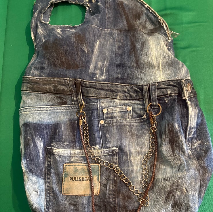 Denim bag made of upcycled jeans. Handmade, with a spacious inside pocket, a zipper at the top and two outside pockets.