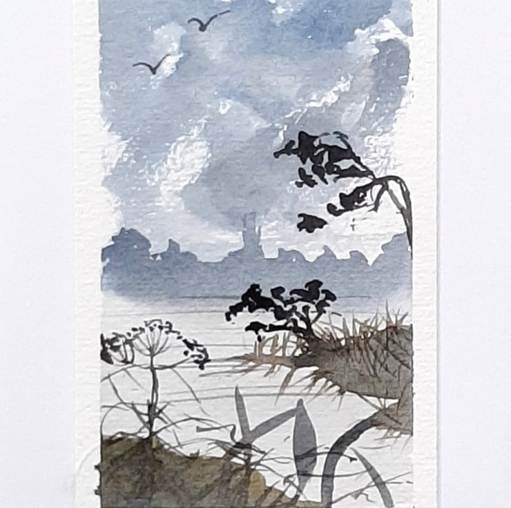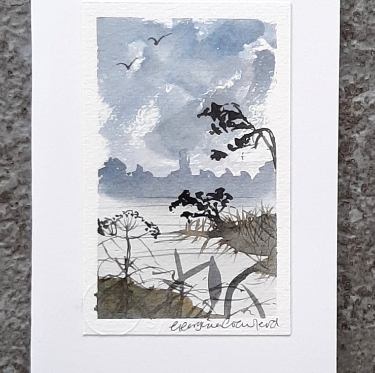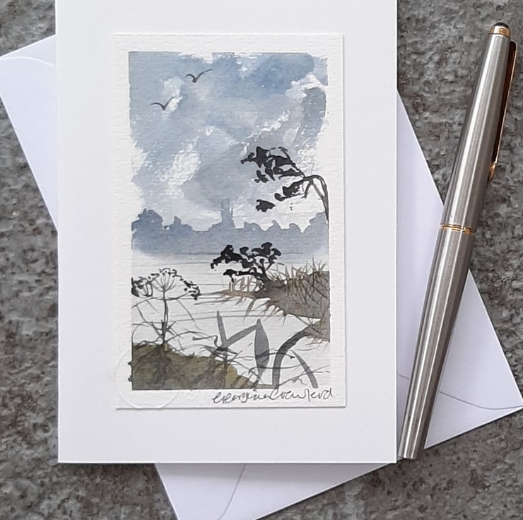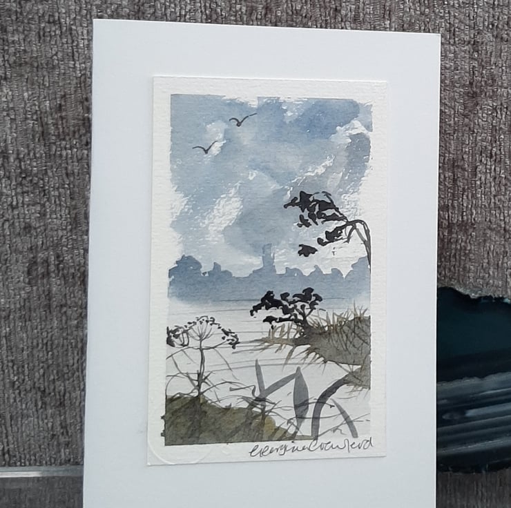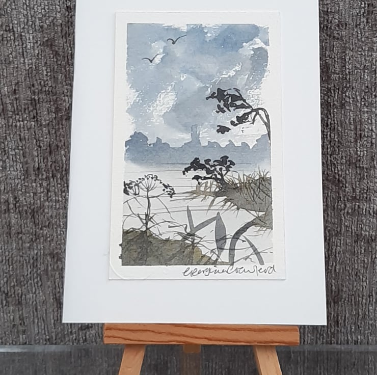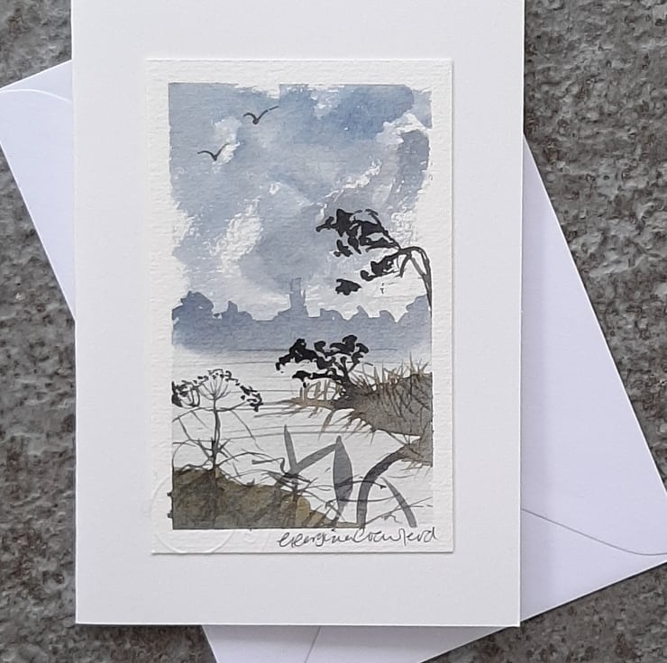 Handpainted Watercolour, mounted onto hand cut, soft-white Card.