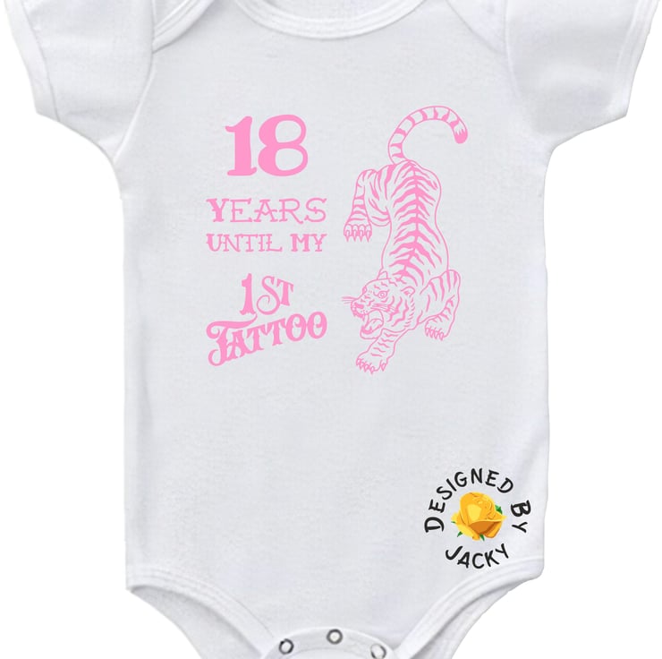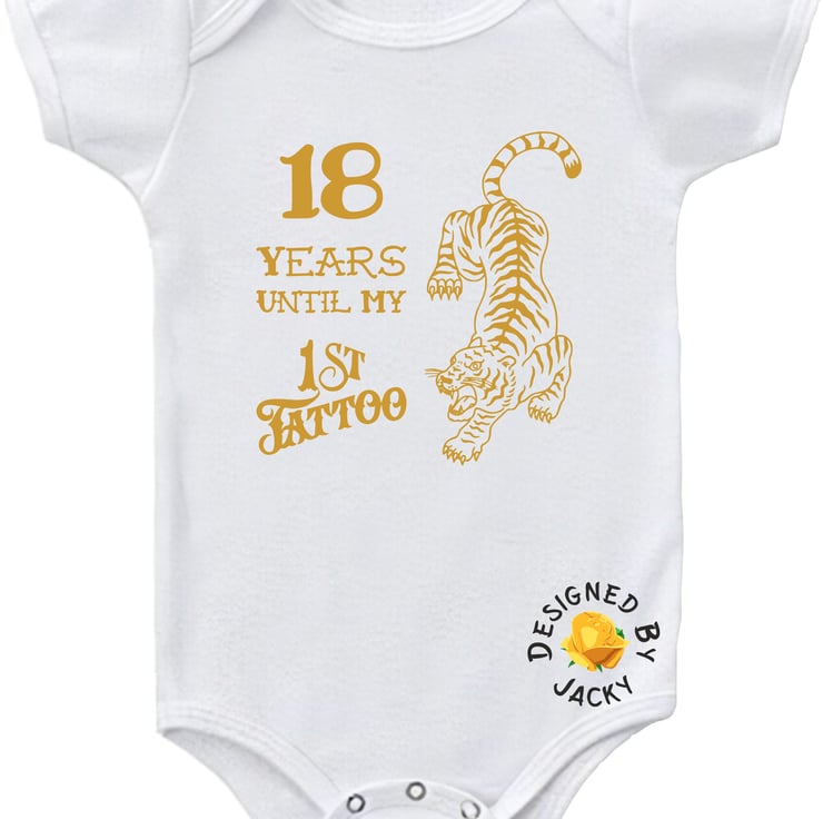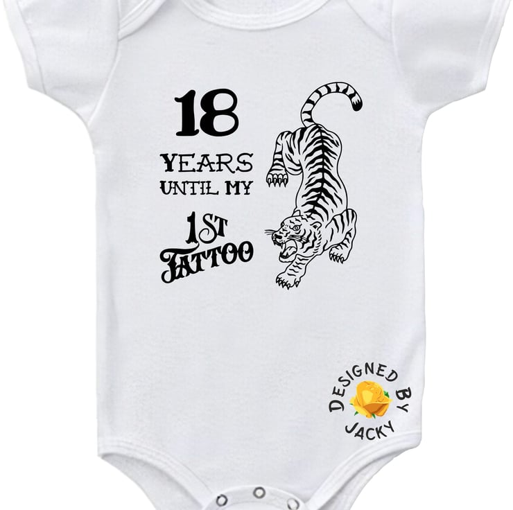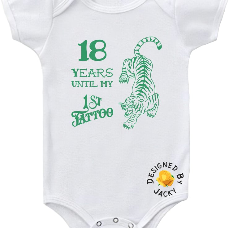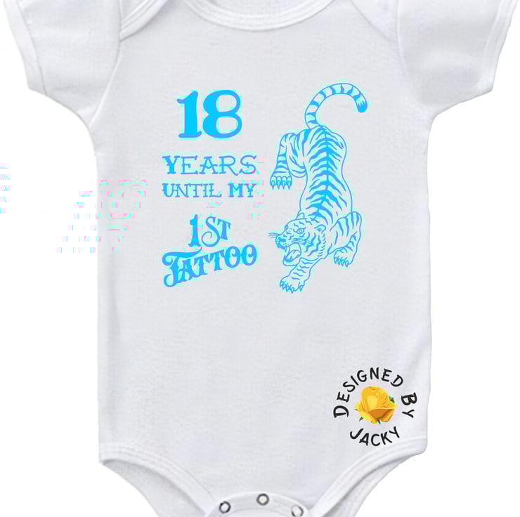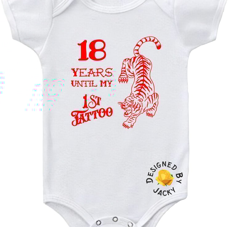 18 Years Until My First Tattoo With Dragon Design - funny baby vest from designed by Jacky. This item is made to order.