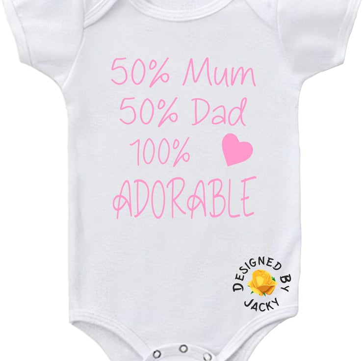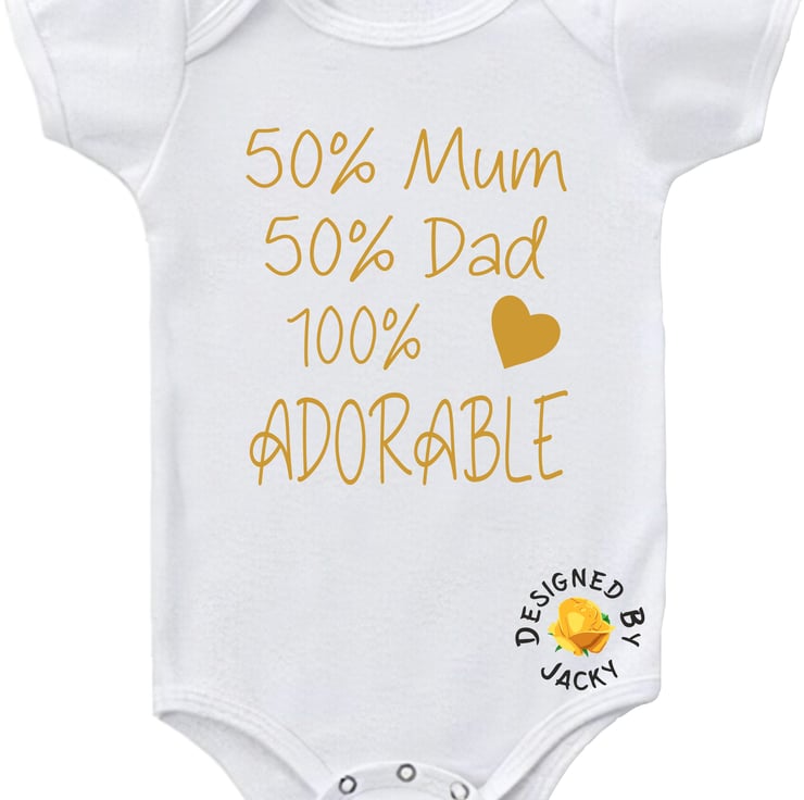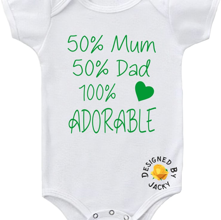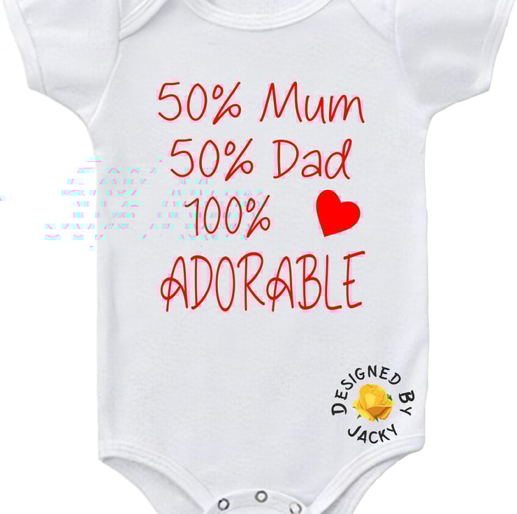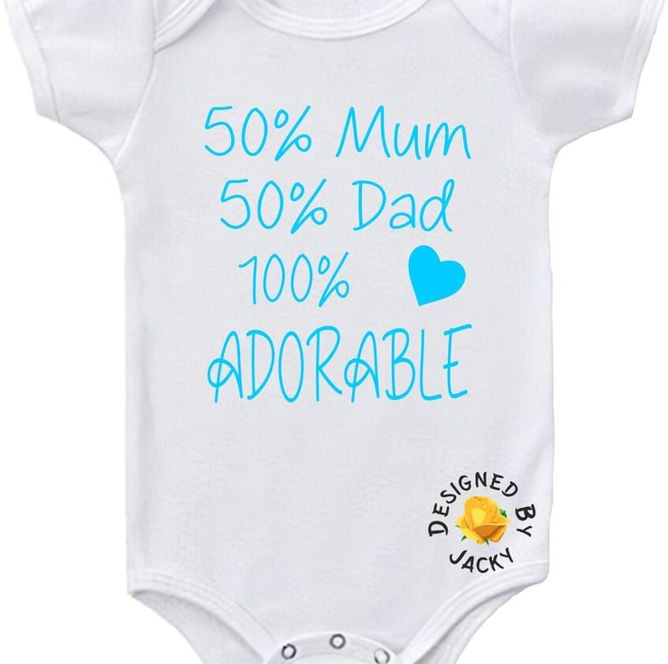 50% Mum 50% Dad 100% Adorable - funny baby vest from designed by Jacky. This item is made to order.