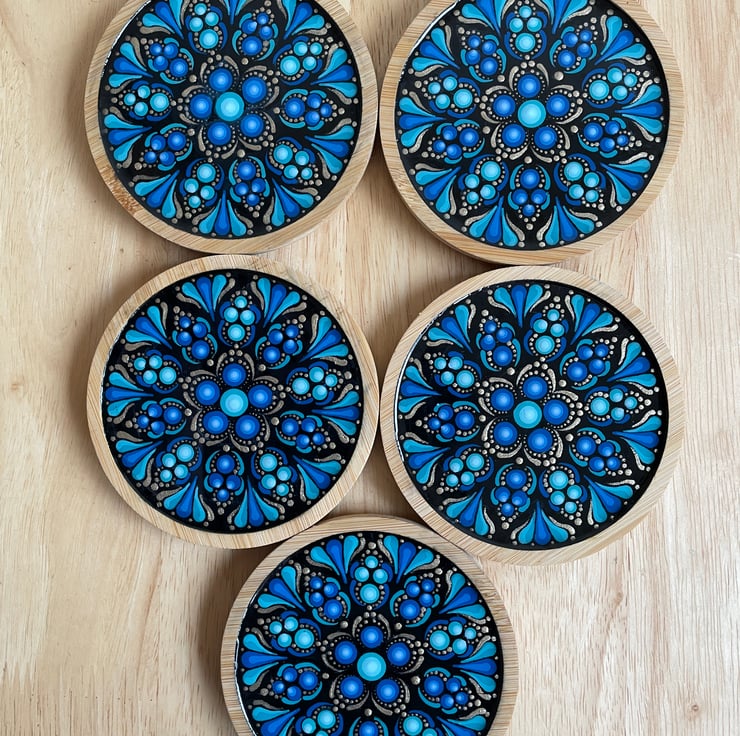 This Mandala coaster set has been hand painted by myself under the artist name of Natures Palette.
