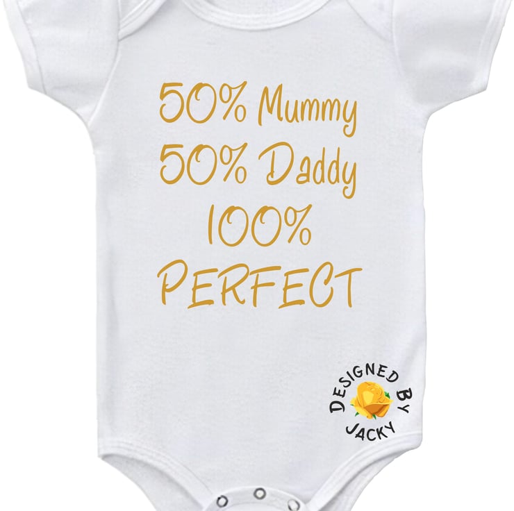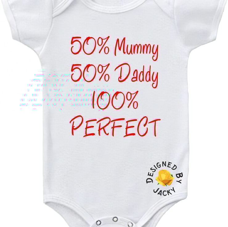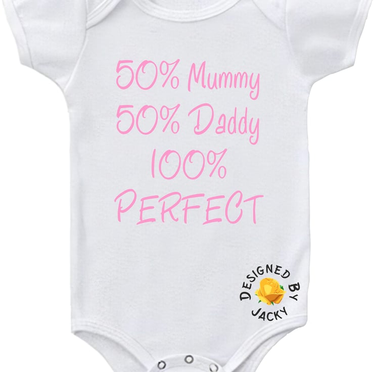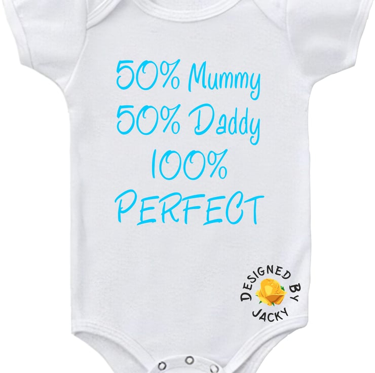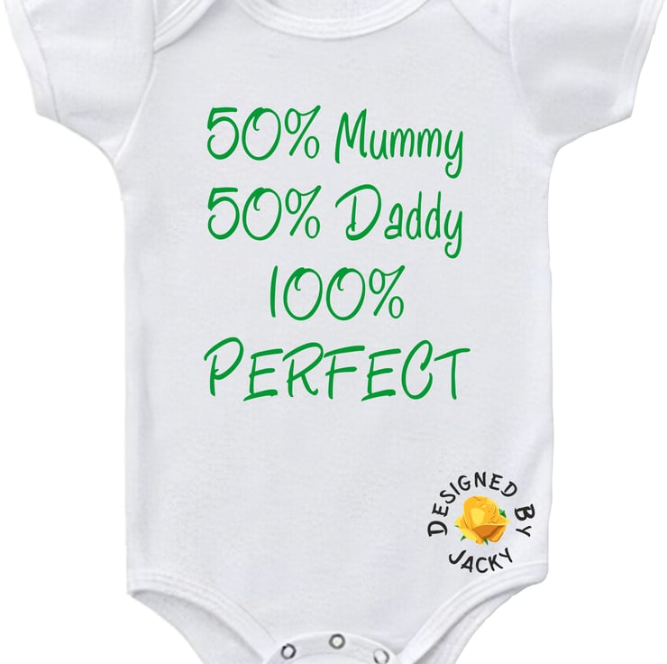 50% Mummy 50% Daddy 100% Perfect - funny baby vest from designed by Jacky. This item is made to order.
