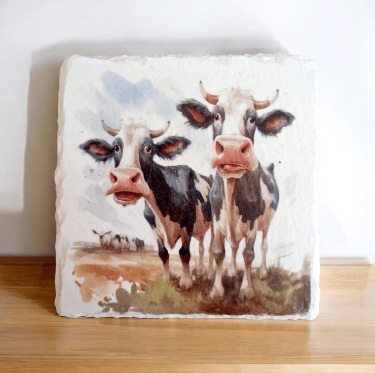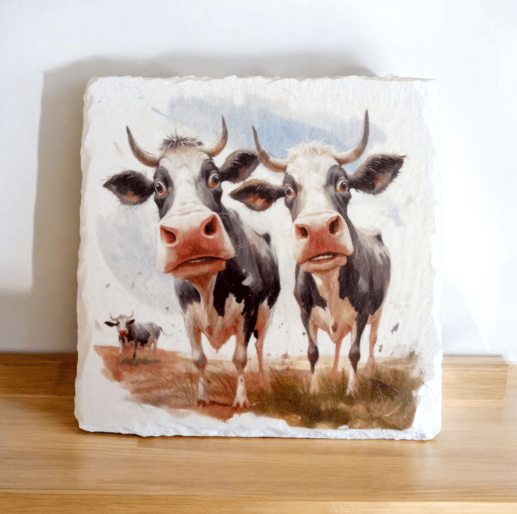Funny Cows Decoupaged Slate Coasters Set of 4