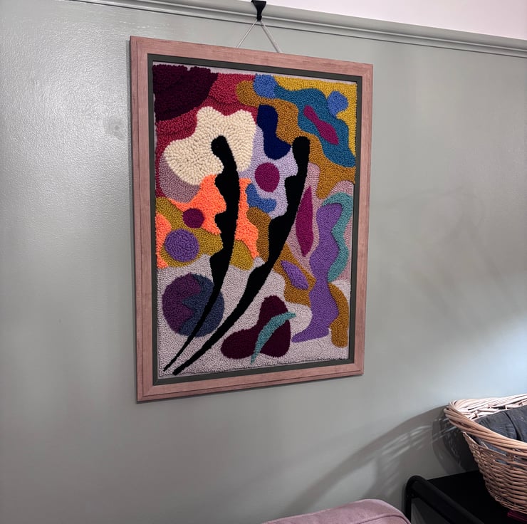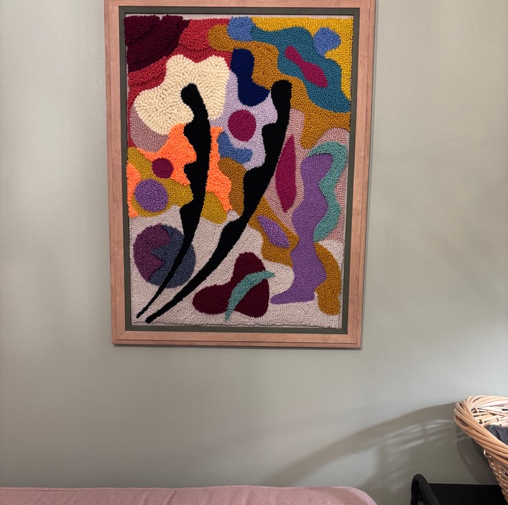 This is hand made, large punch needle wall art, size is 57x 78 cm including frame. Frame comes with it and it’s ready to be put on the wall.
